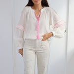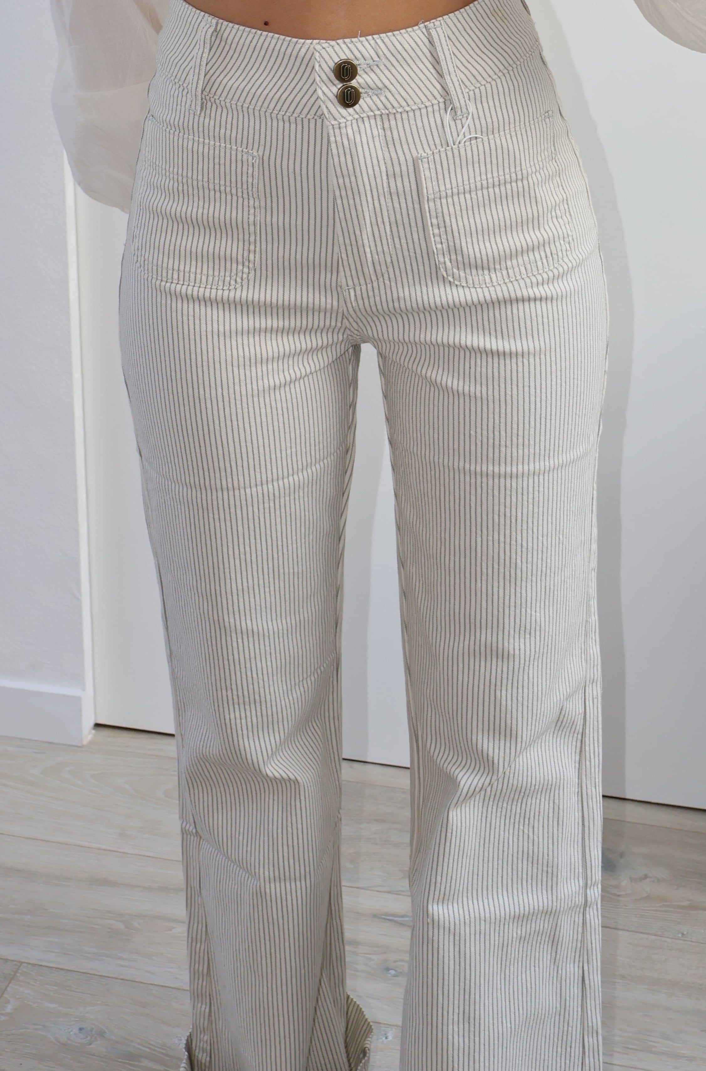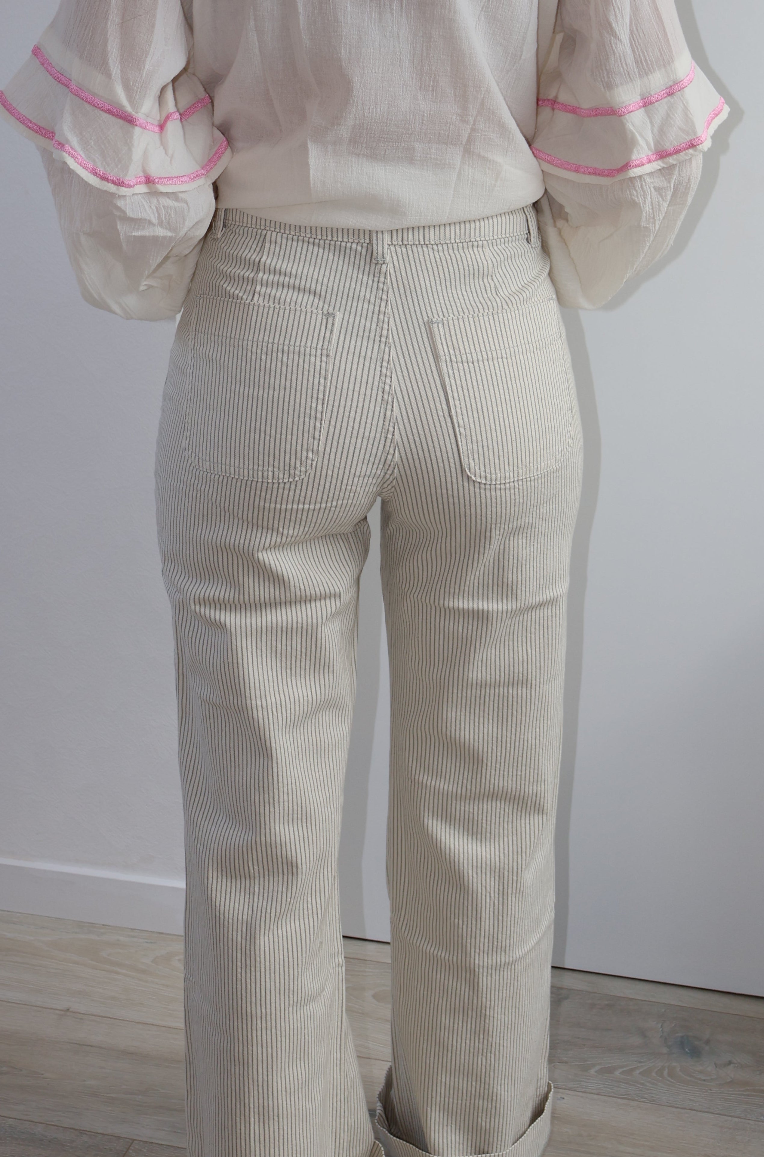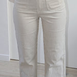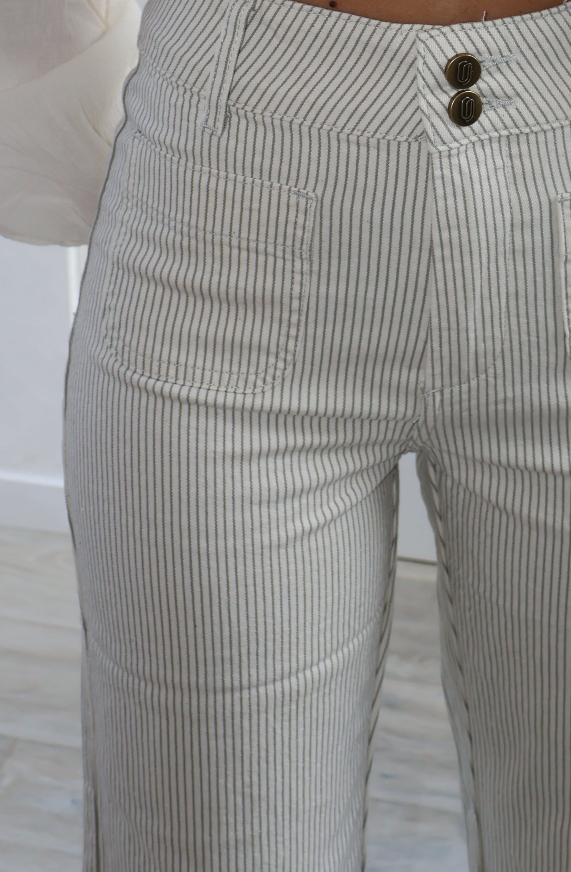 Jeans rayé vert avec deux jolies poches à l'avant.