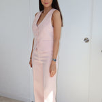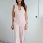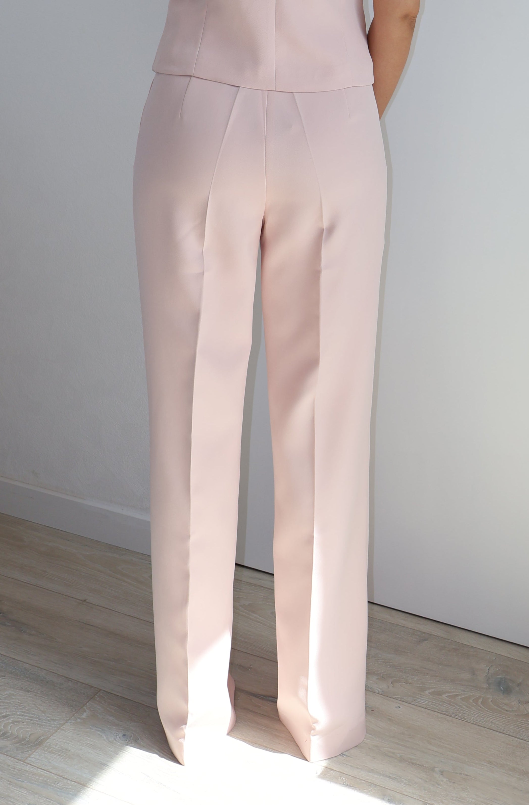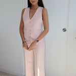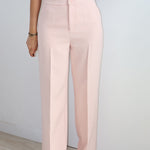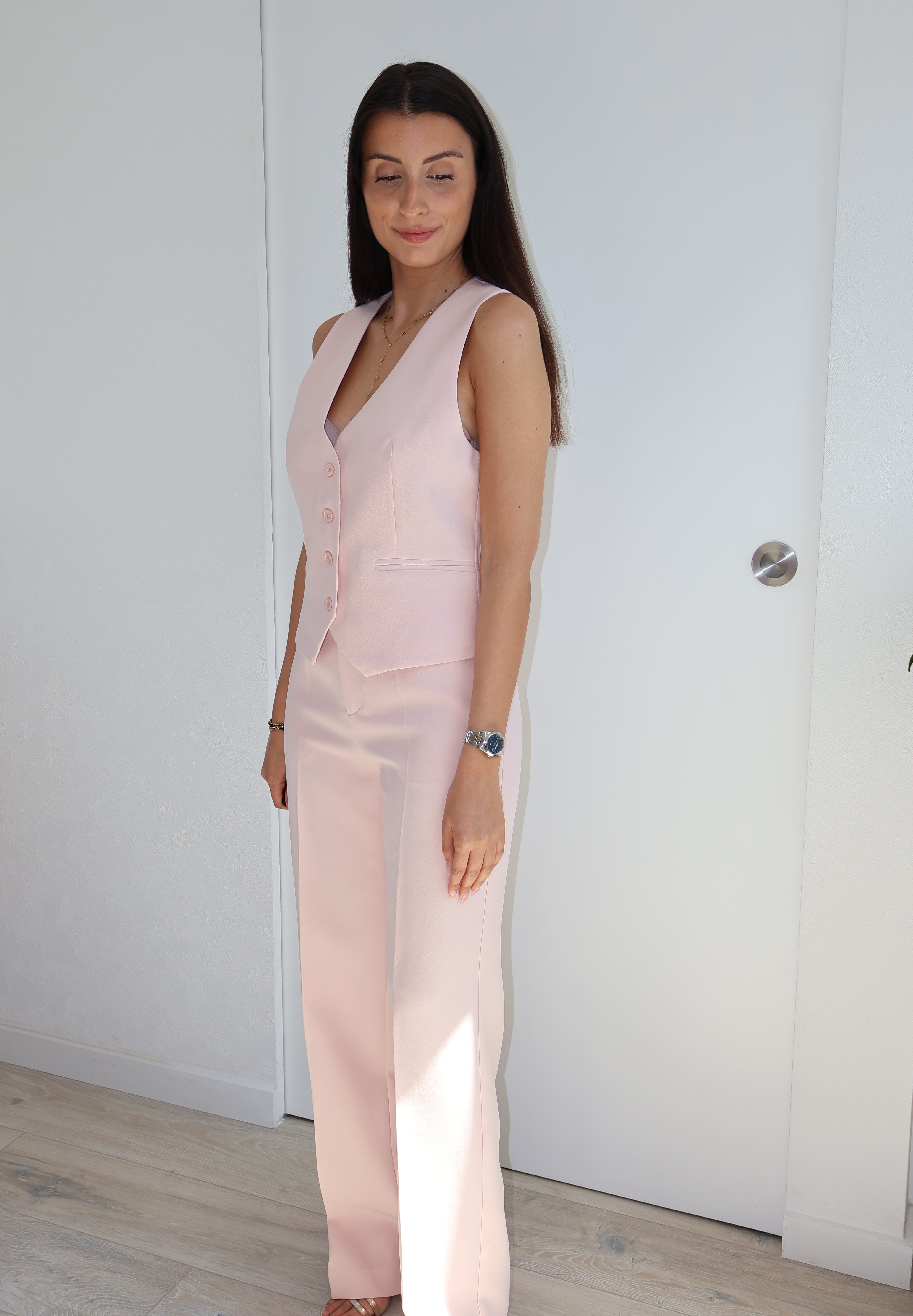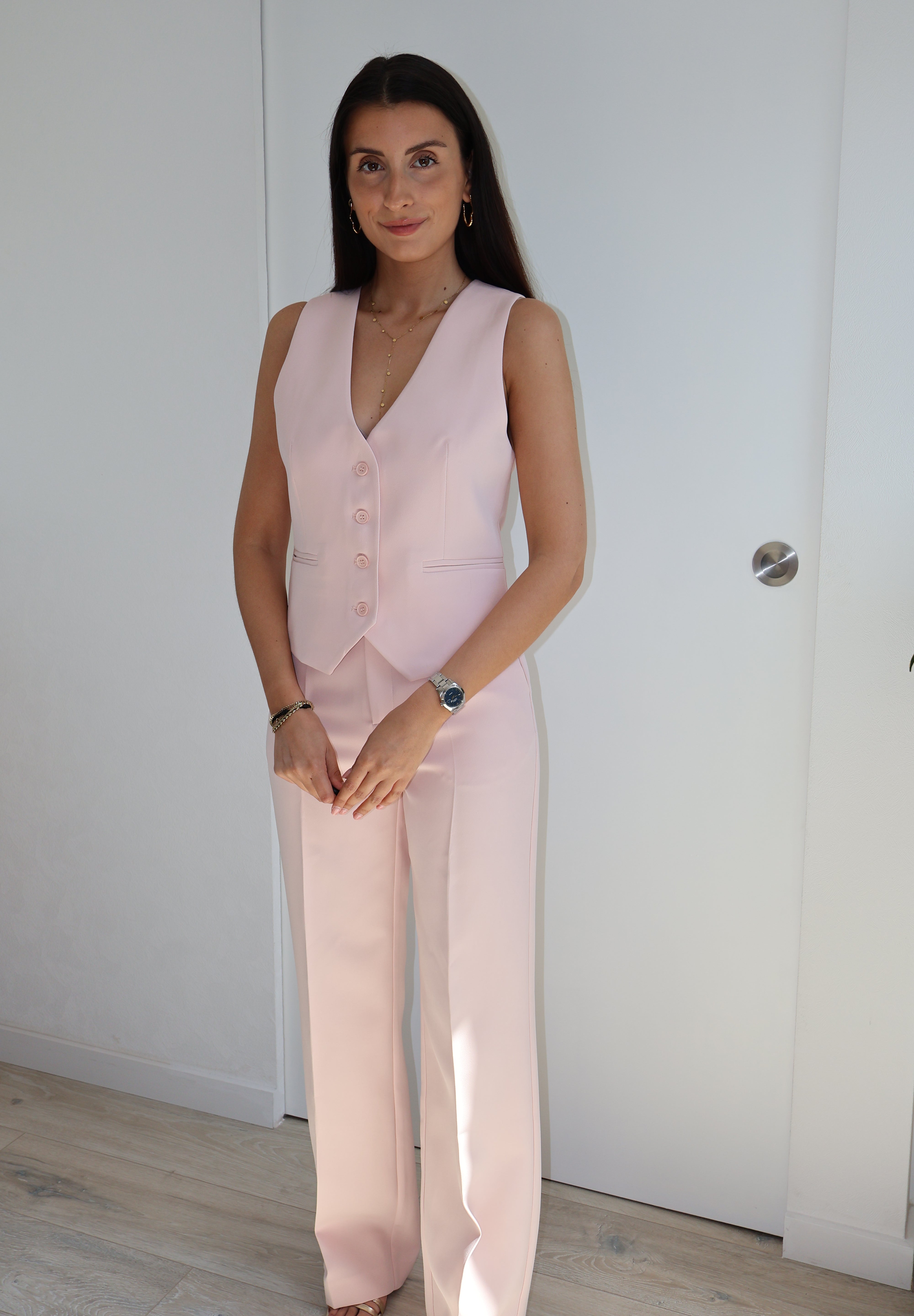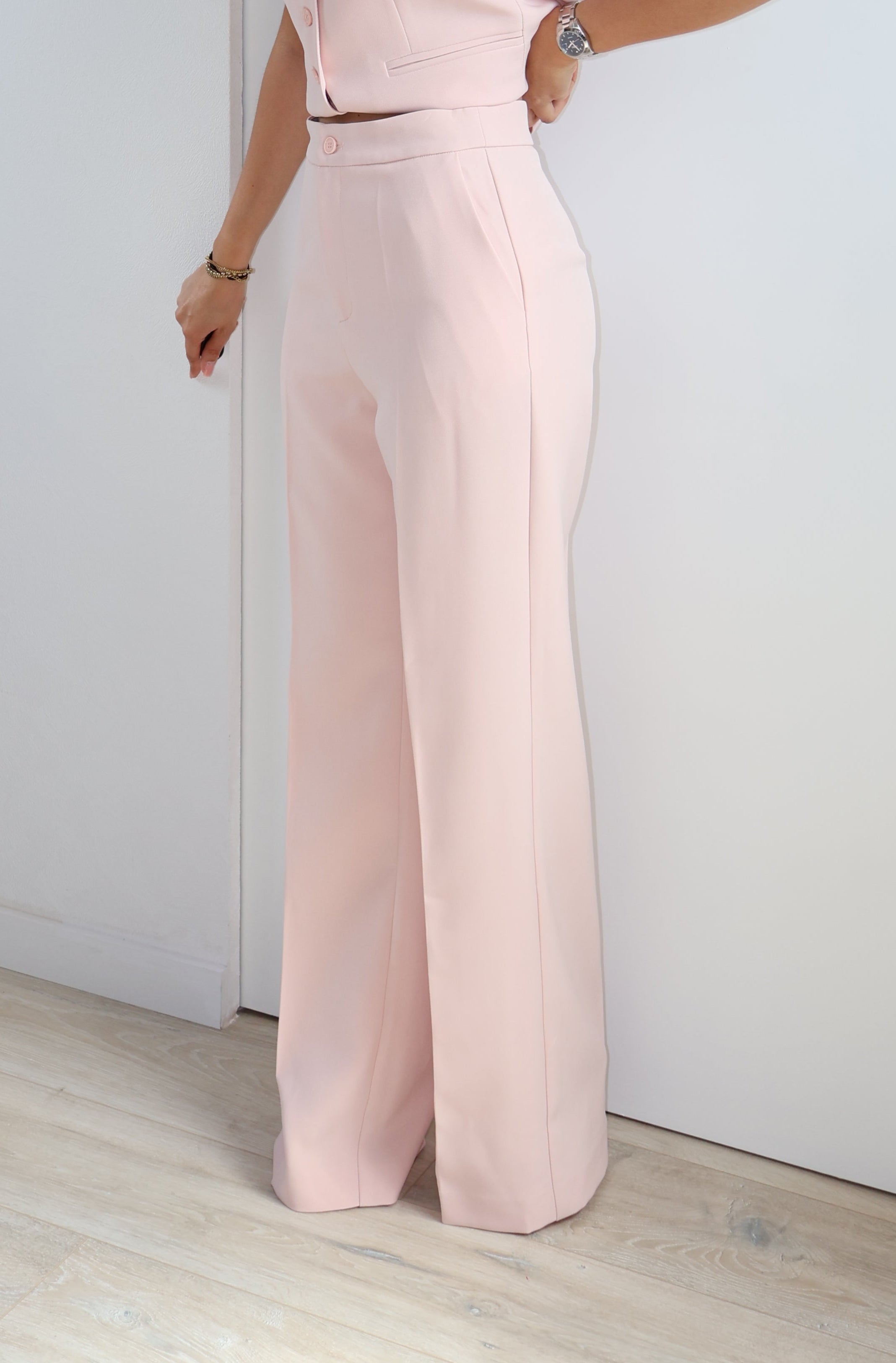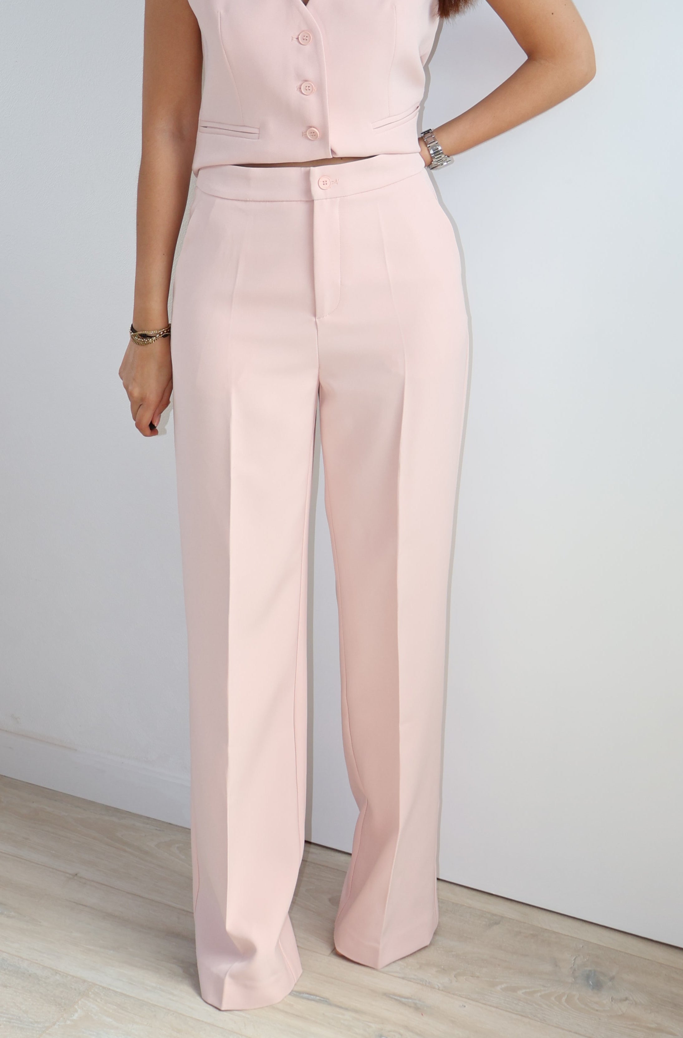 Joli pantalon rose clair qui peut s'associer avec le gilet Rosaline.