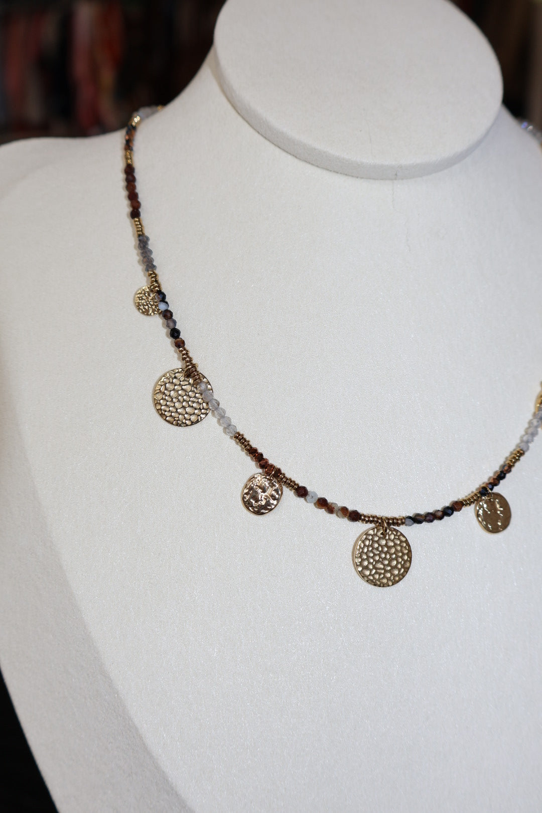 Collier ajustable en perles. Acier inoxydable