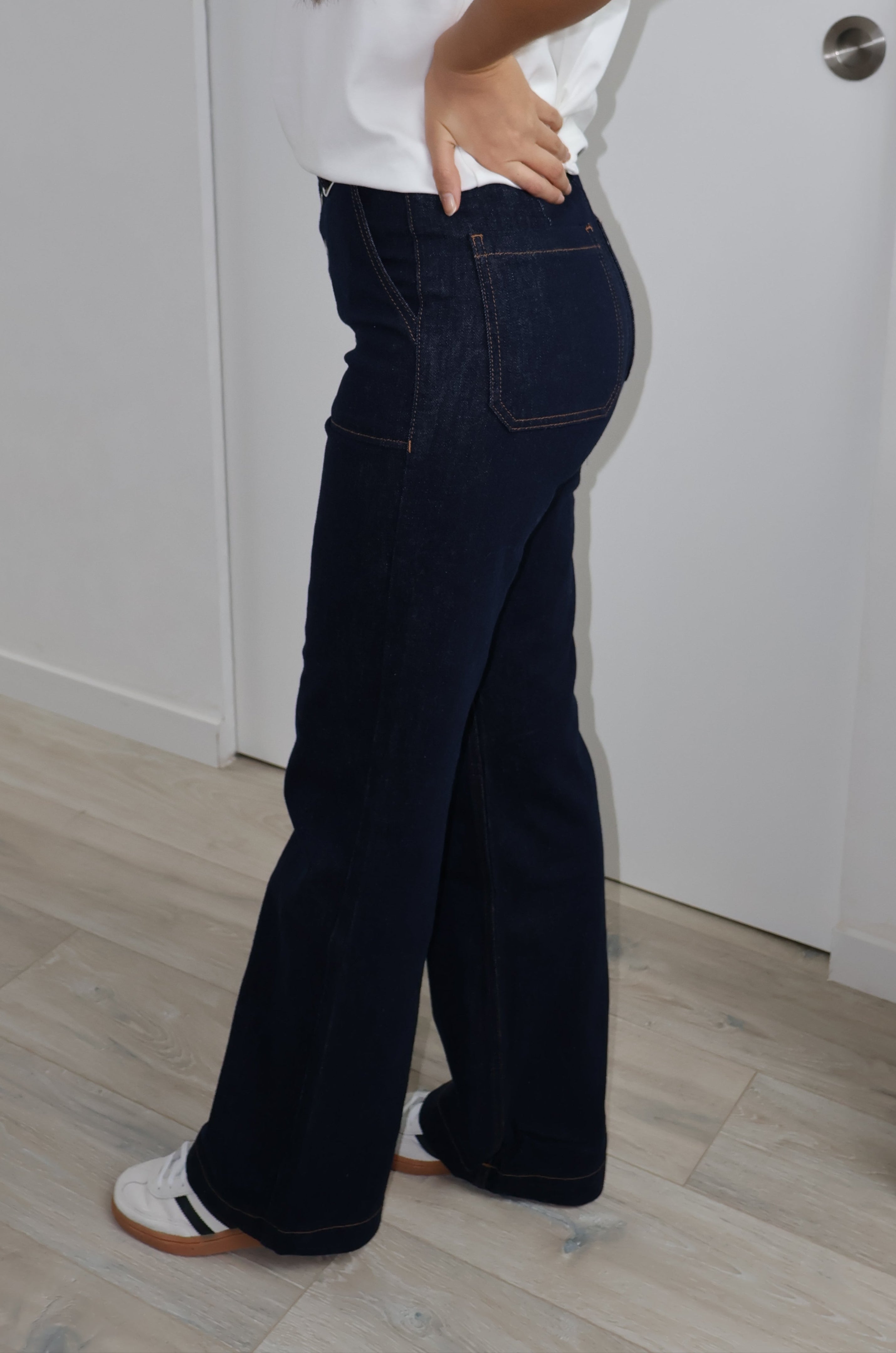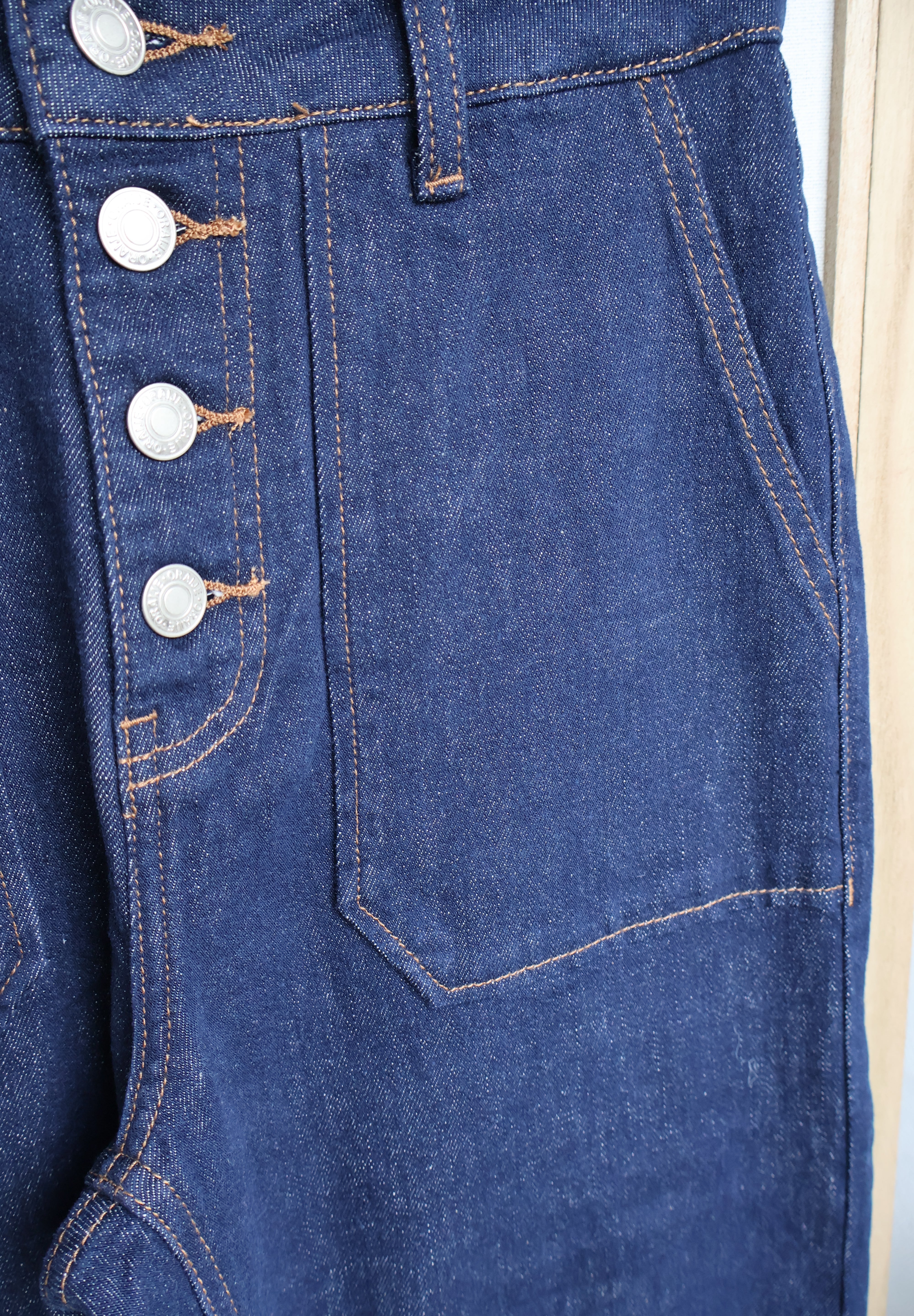 Détails : fermeture du pantalon par 4 boutons à l'avant avec poches sur l'avant du jeans.