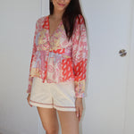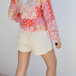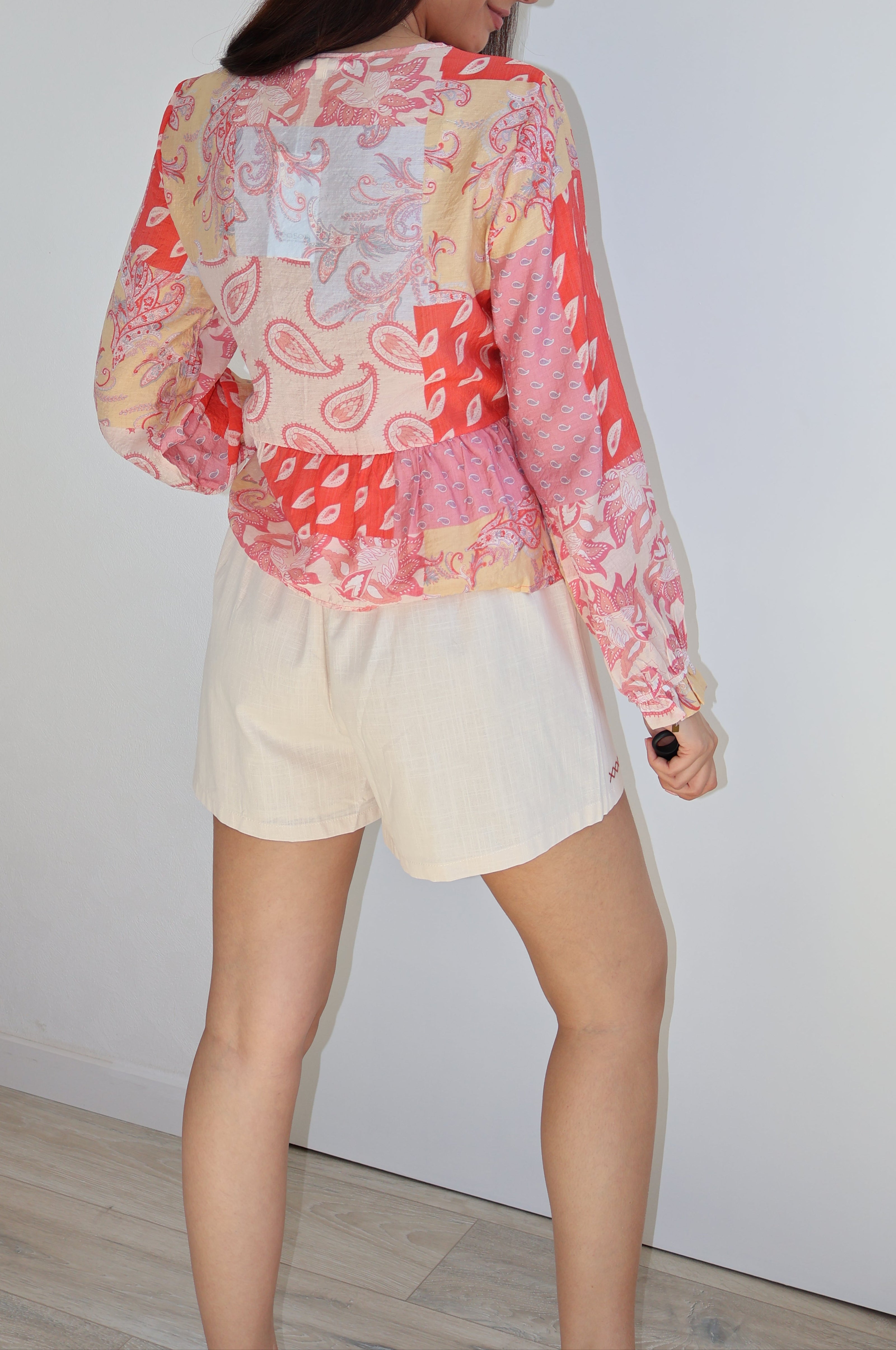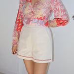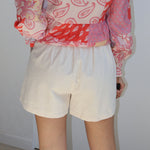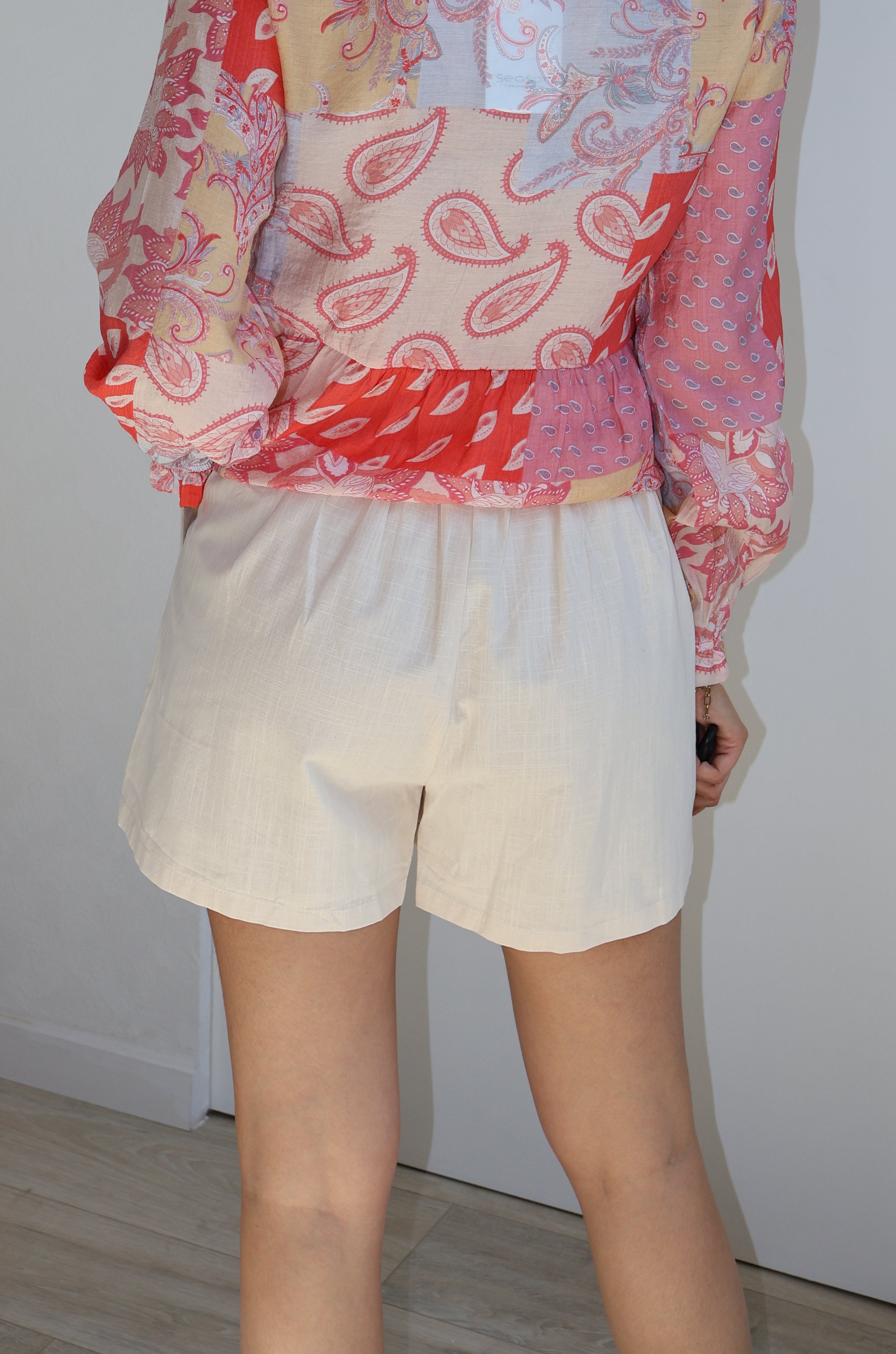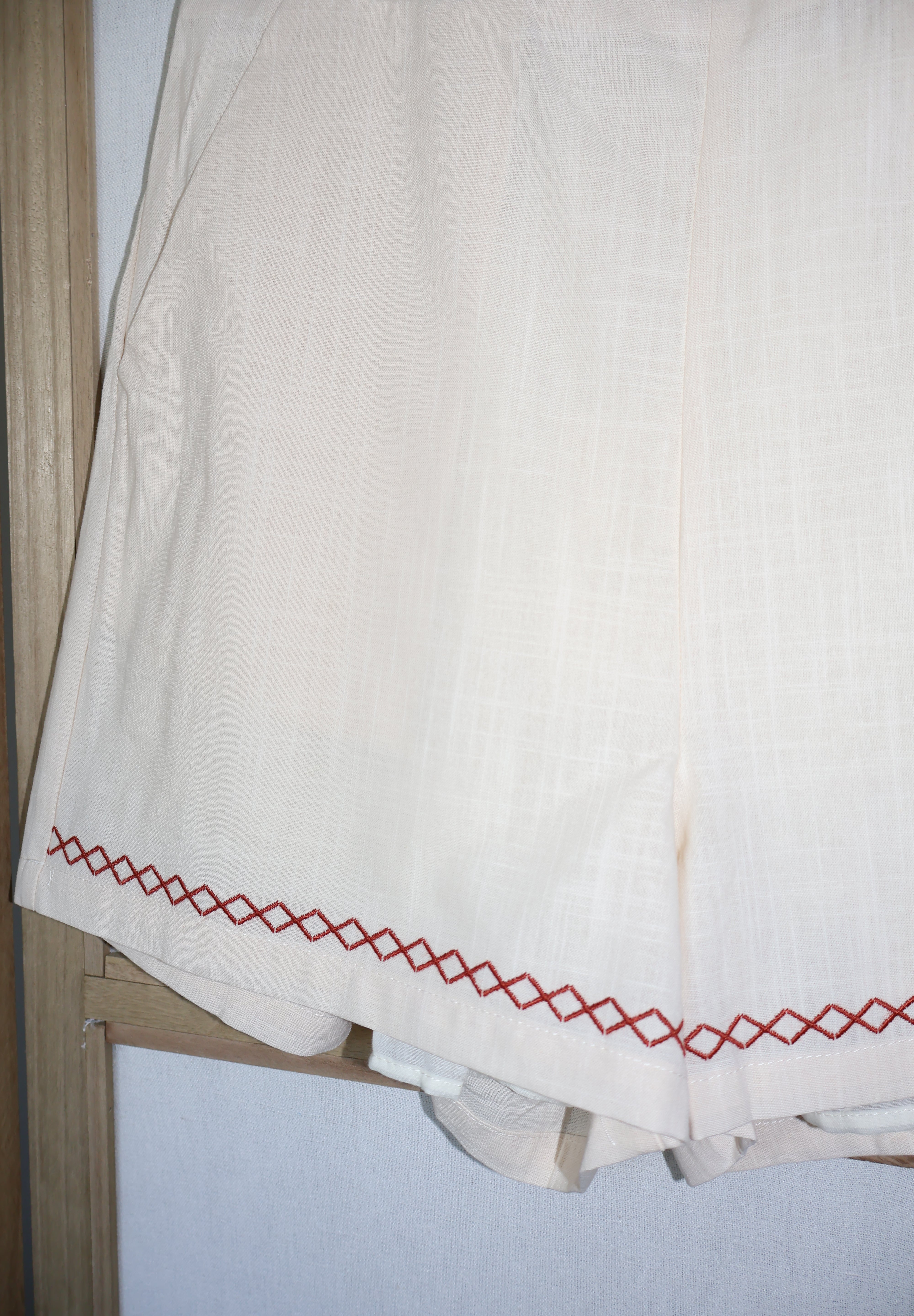 Une jolie sur-piqure bordeaux dans le bas du short fait tout le détail.