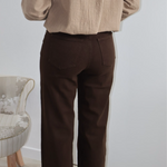 Adoptez sans hésiter le jean droit marron, la pièce incontournable de la saison !