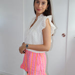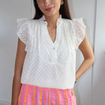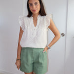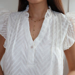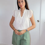 Blouse avec un col en V avec une doublure sur l'avant de la blouse.