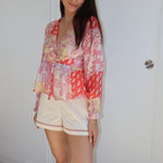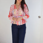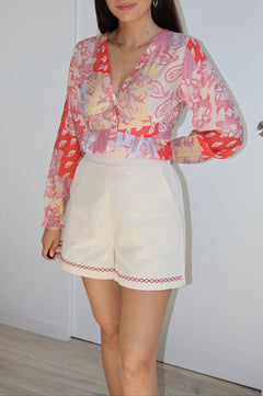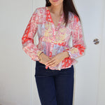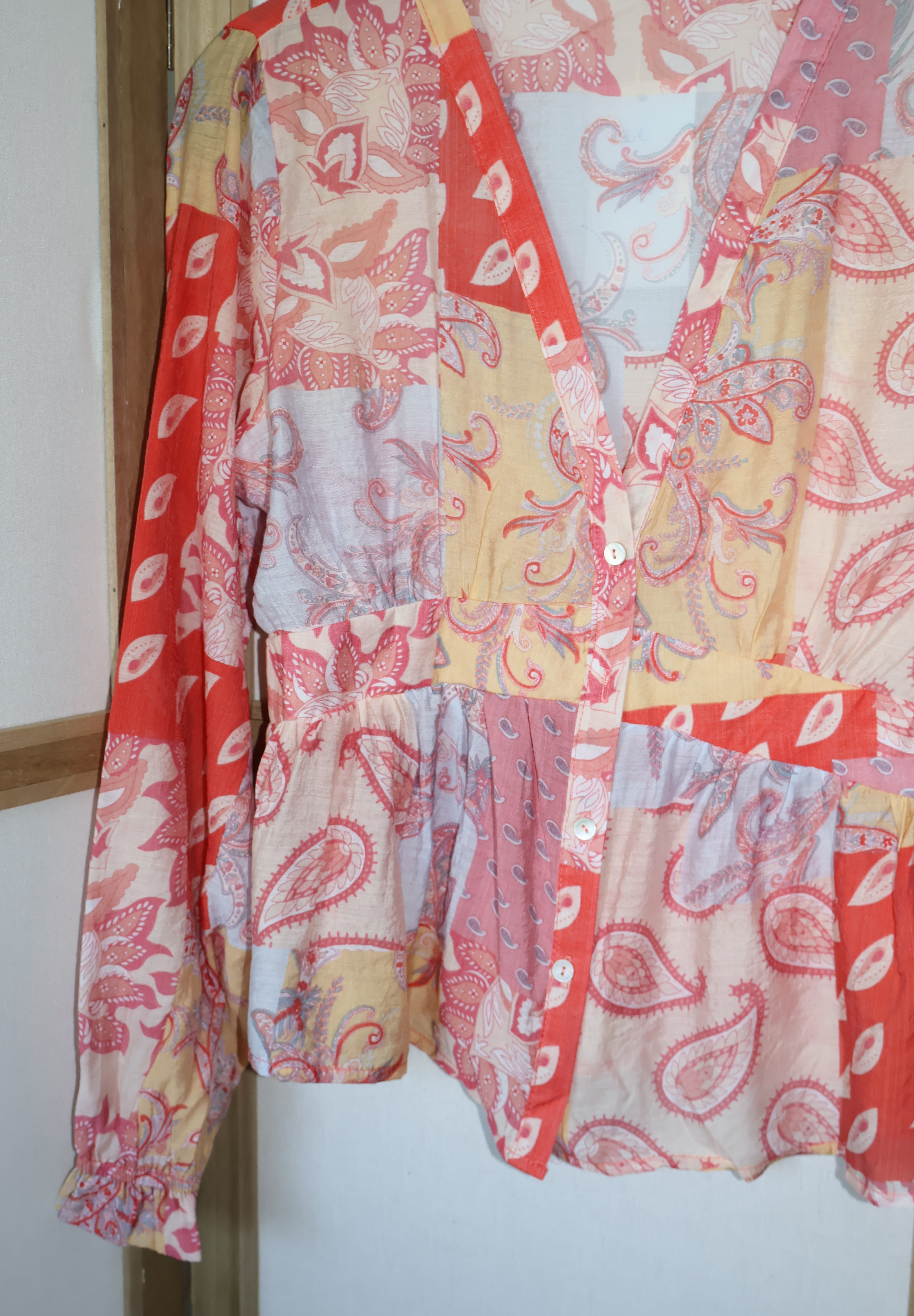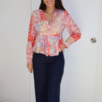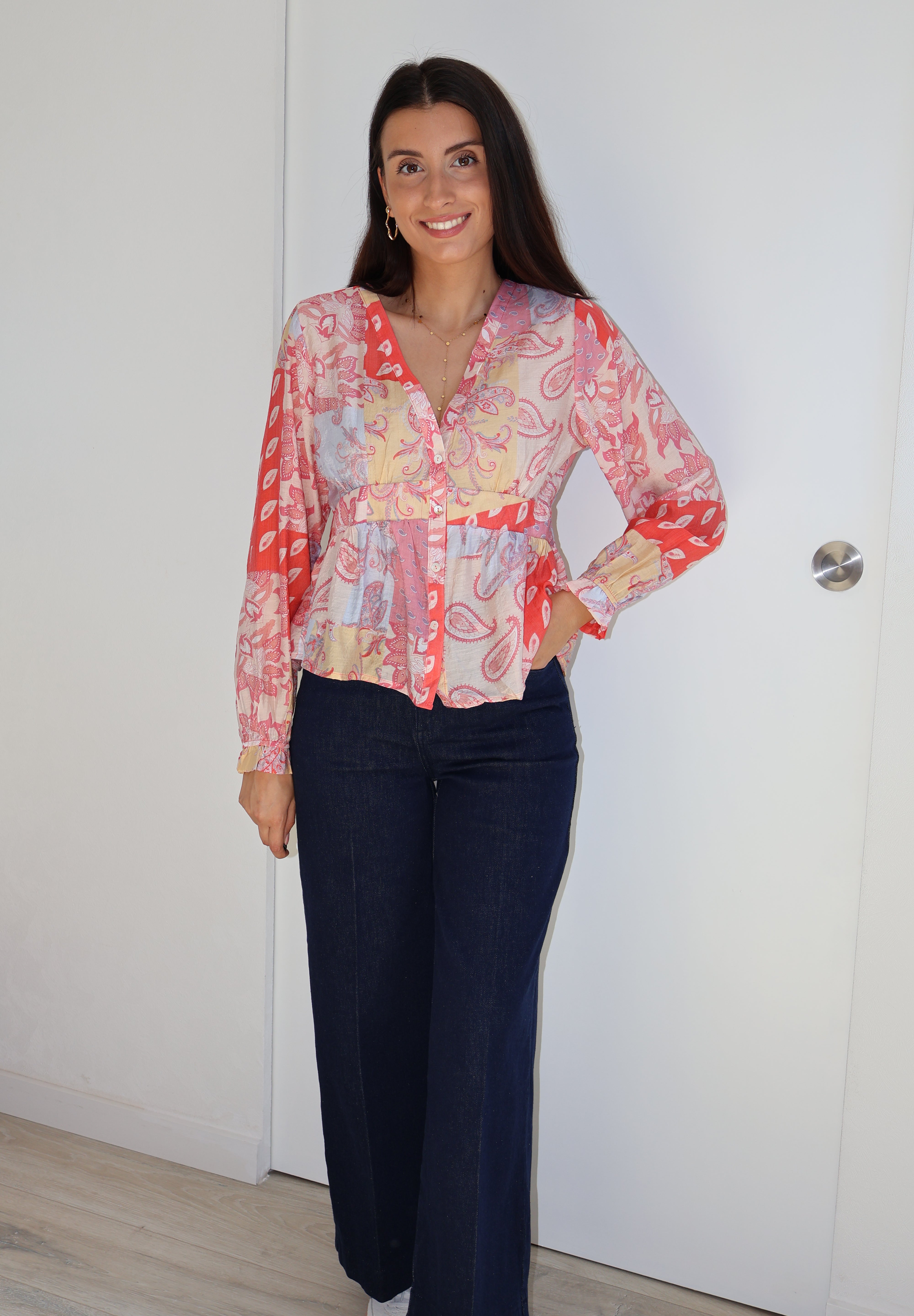 Chemisier subtilement resserré à la taille dans les tons corails.