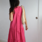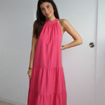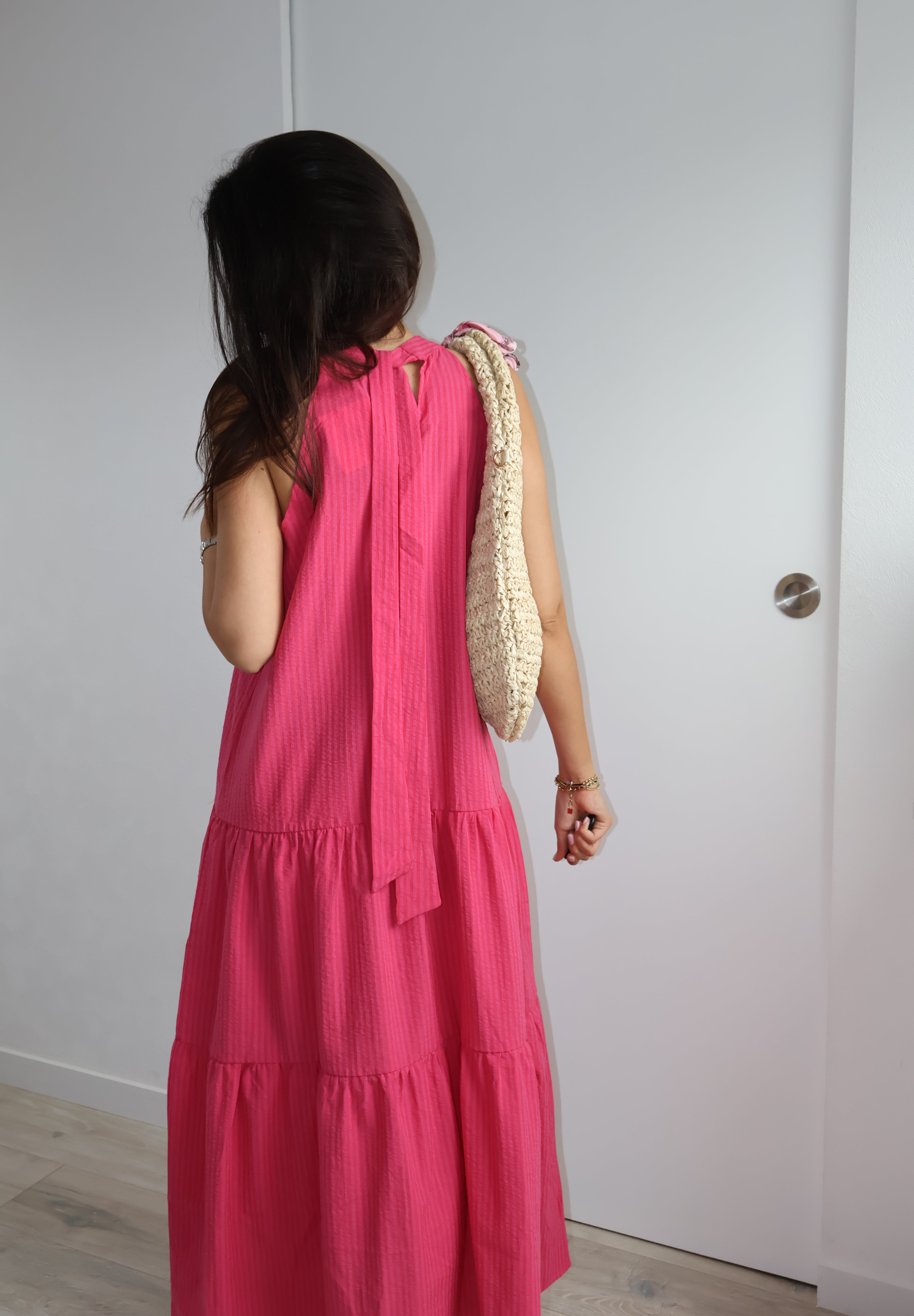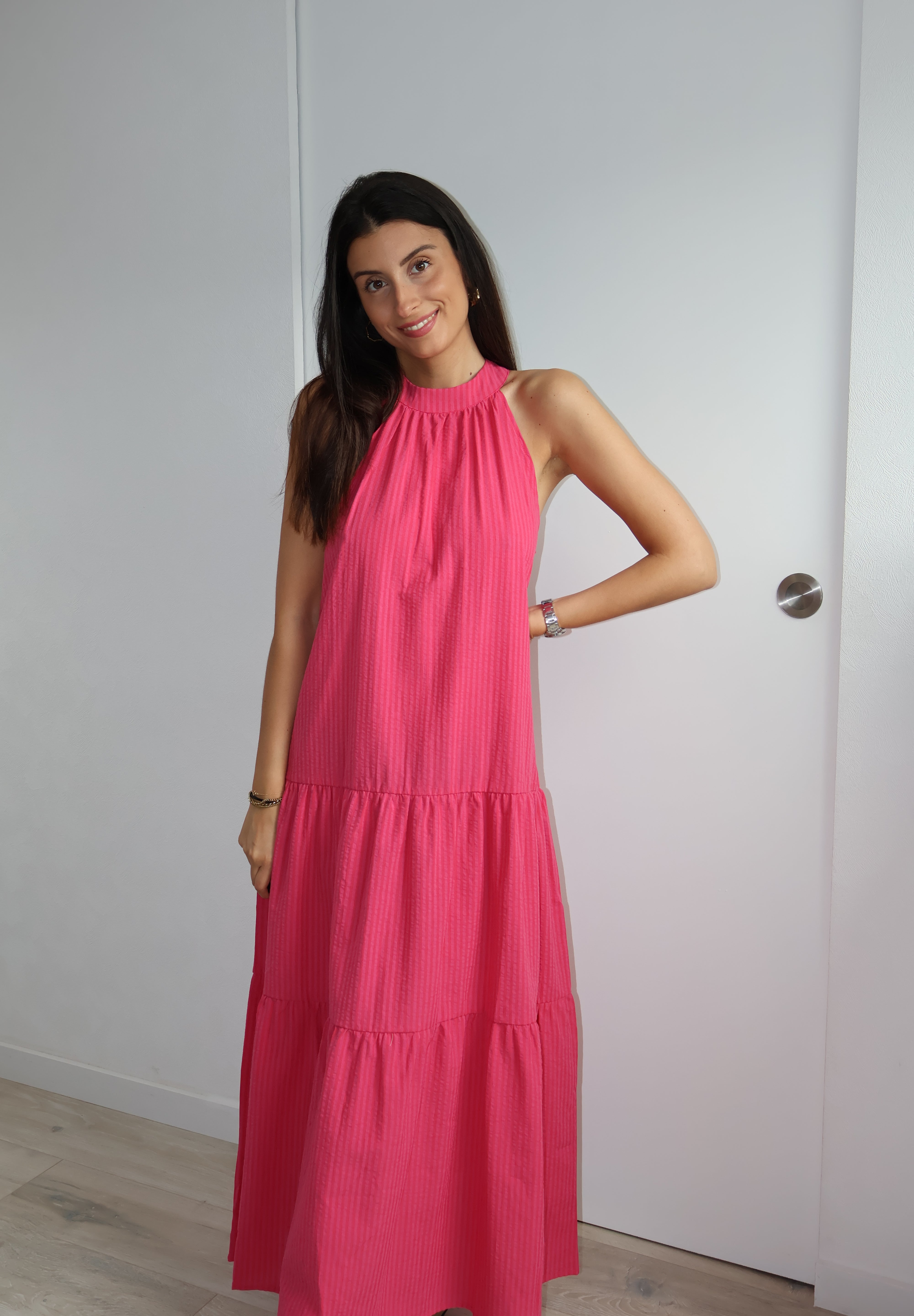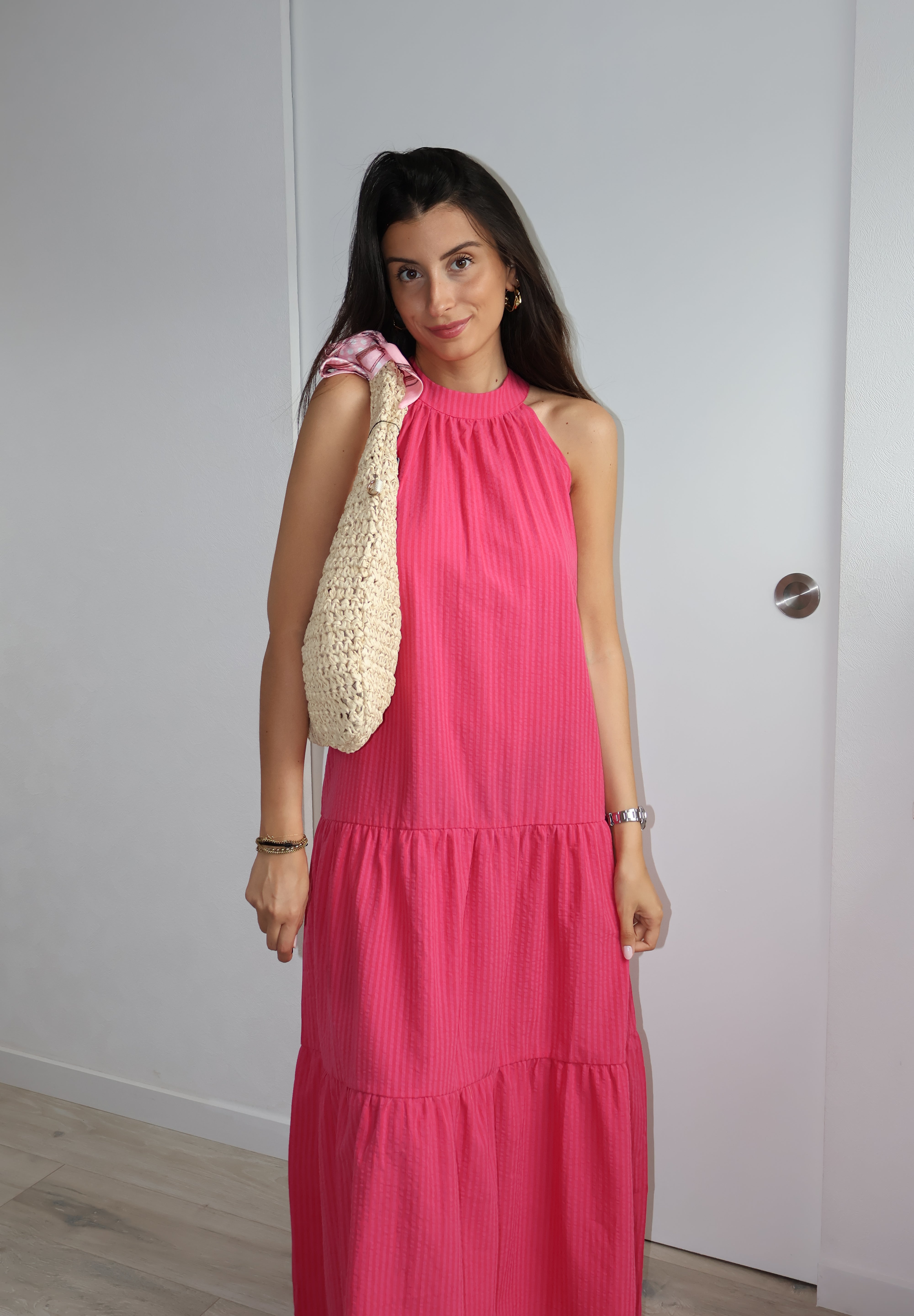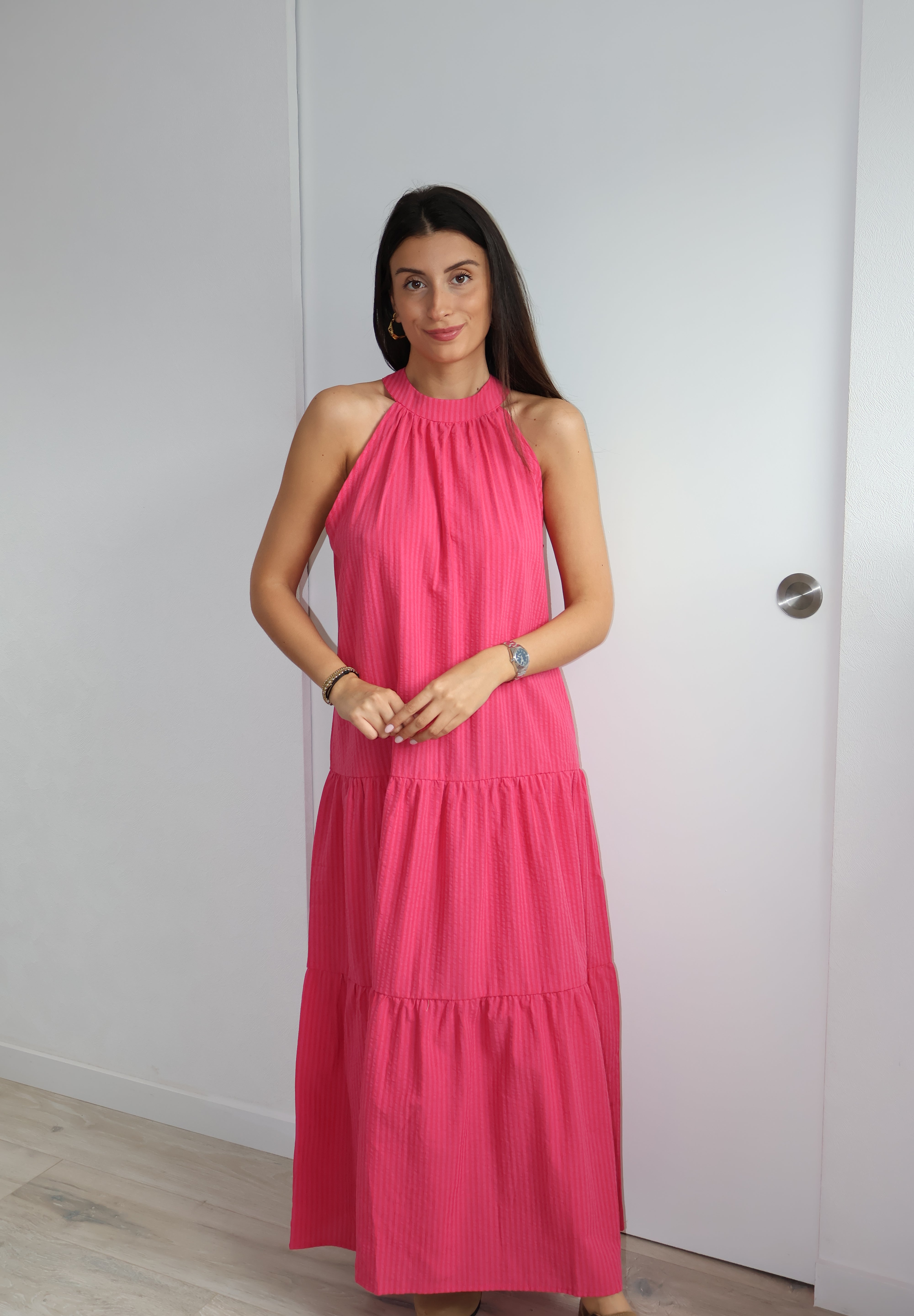 Apportez une touche de fraîcheur et de féminité à votre garde-robe avec cette ravissante robe longue à rayures. Confectionnée dans un tissu léger et fluide, elle offre une silhouette élégante et décontractée parfaite pour les journées ensoleillées.