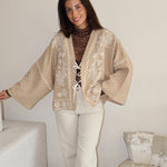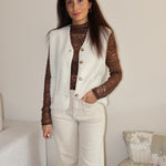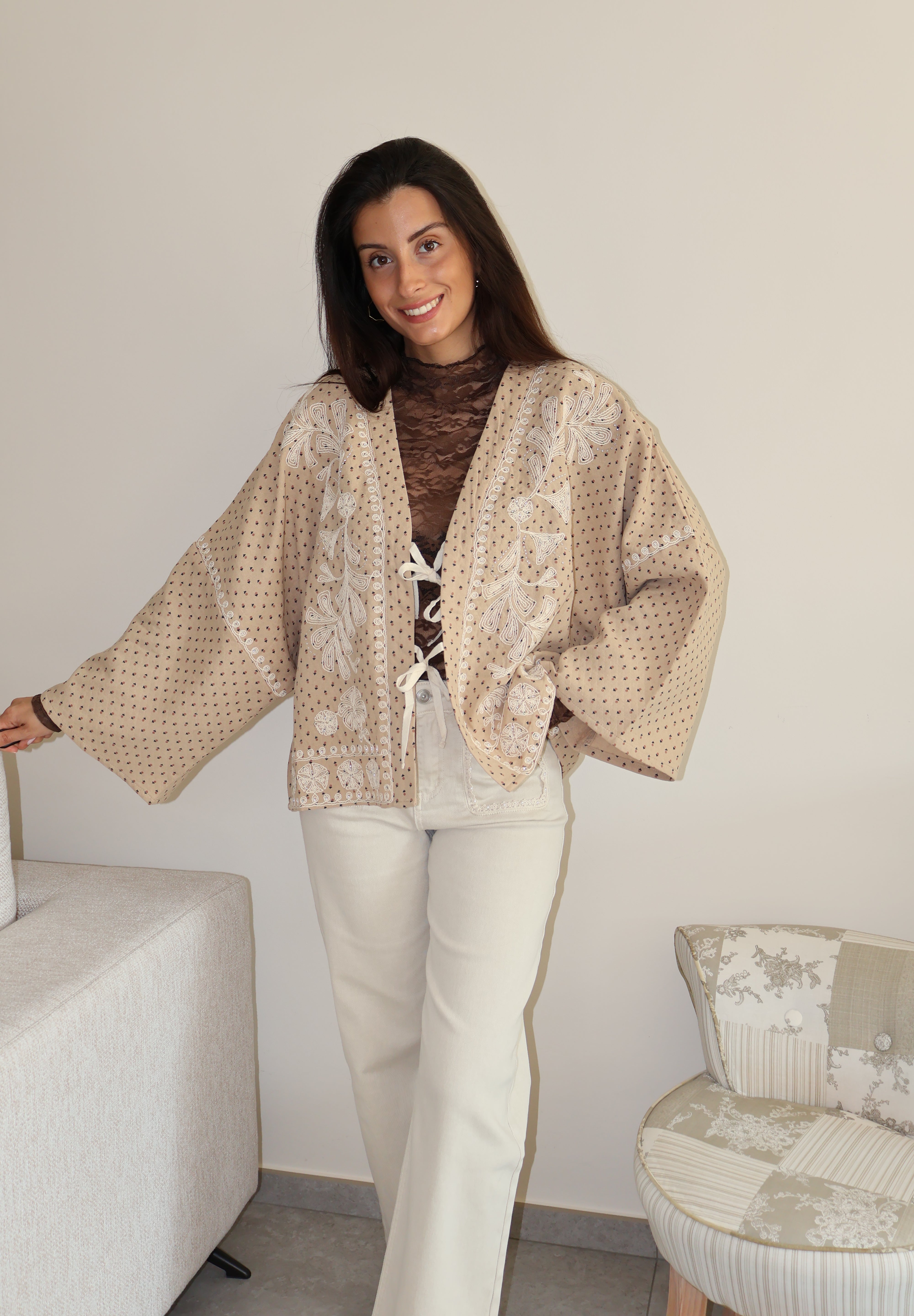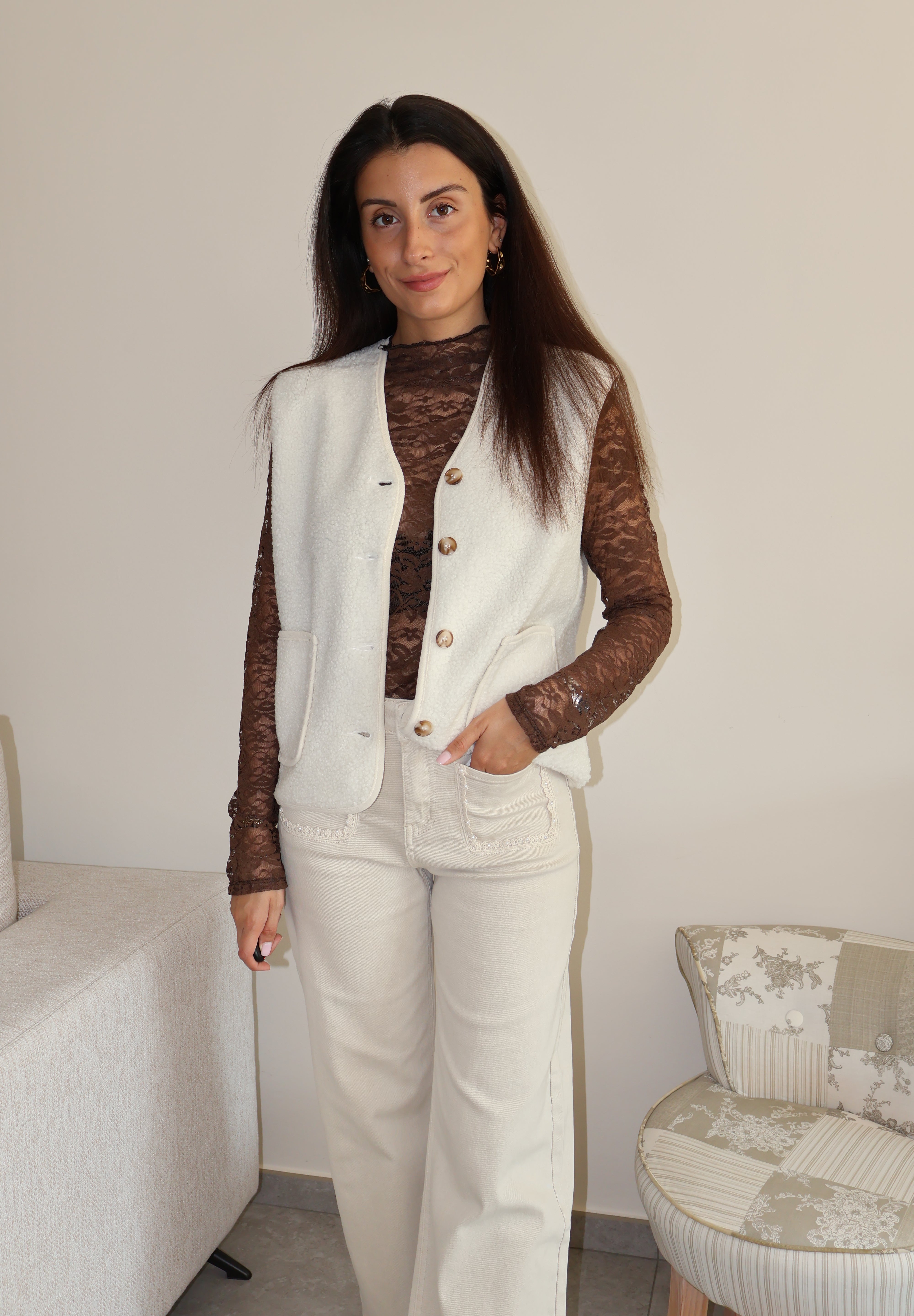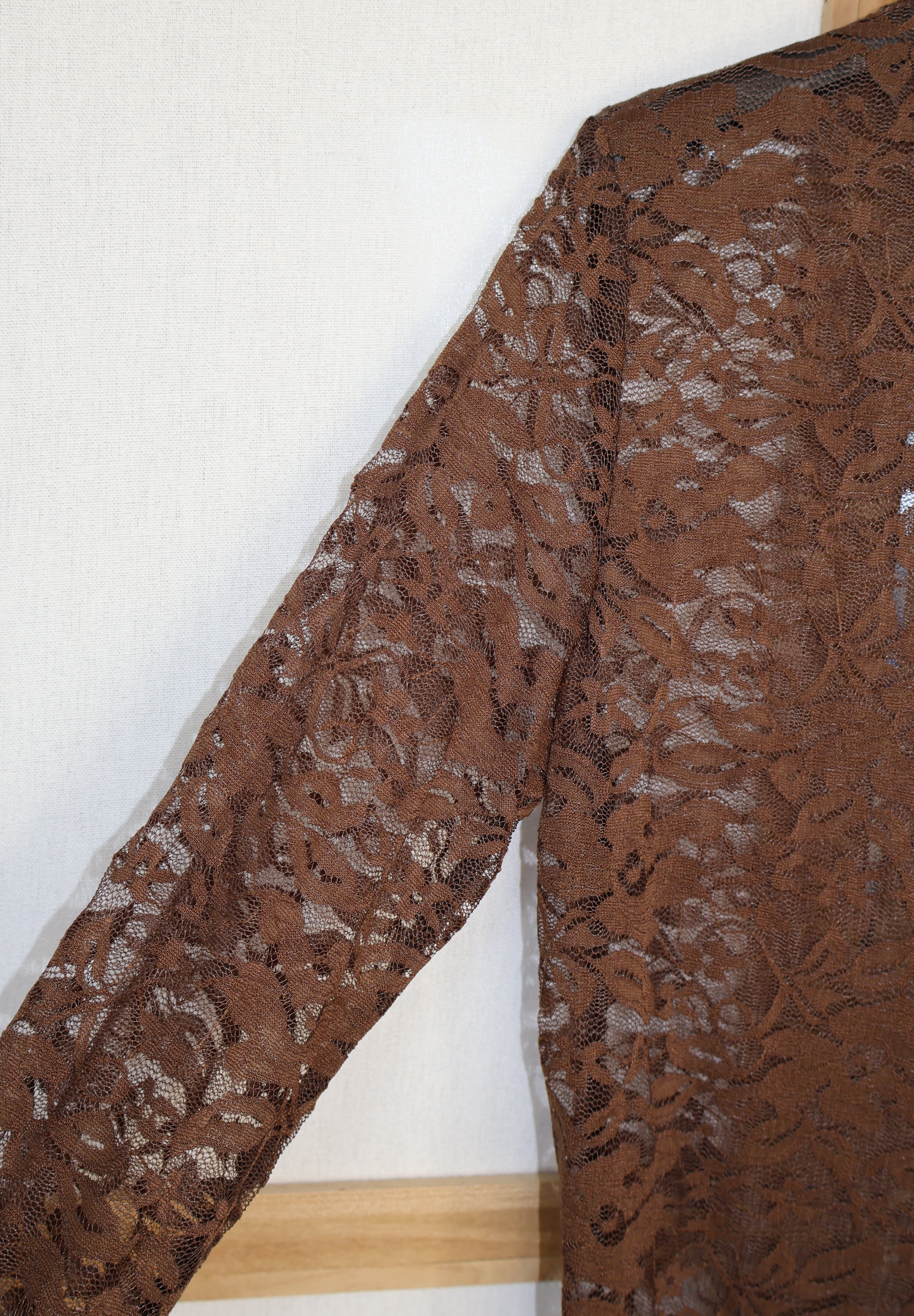 Joli top en dentelle marron à mettre facilement sous un blazer ou un gilet.