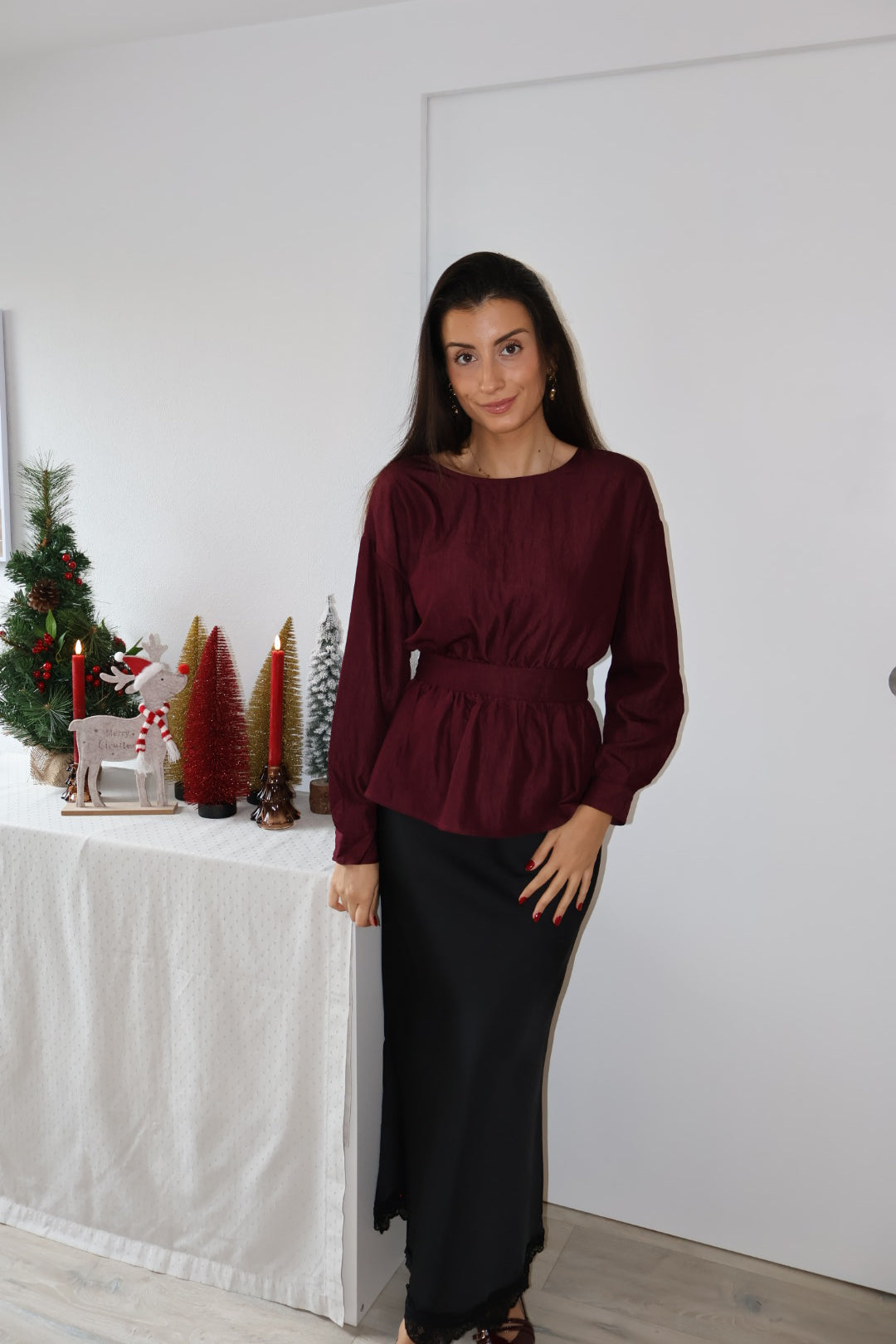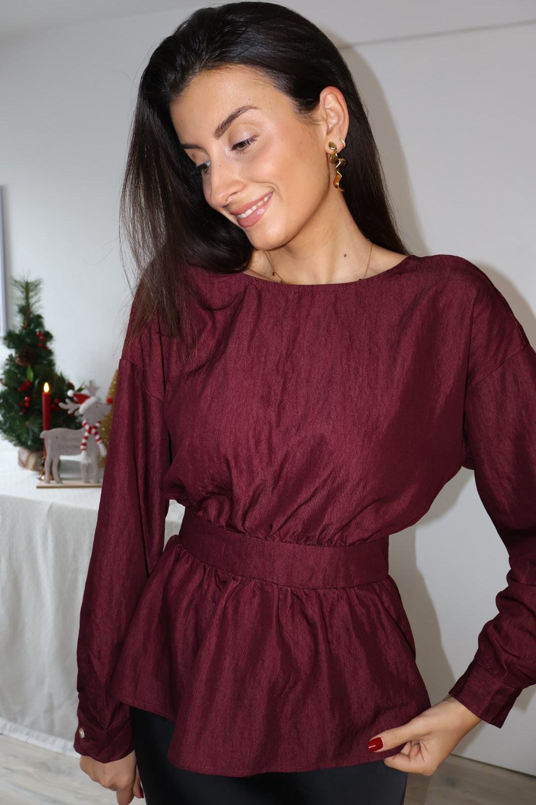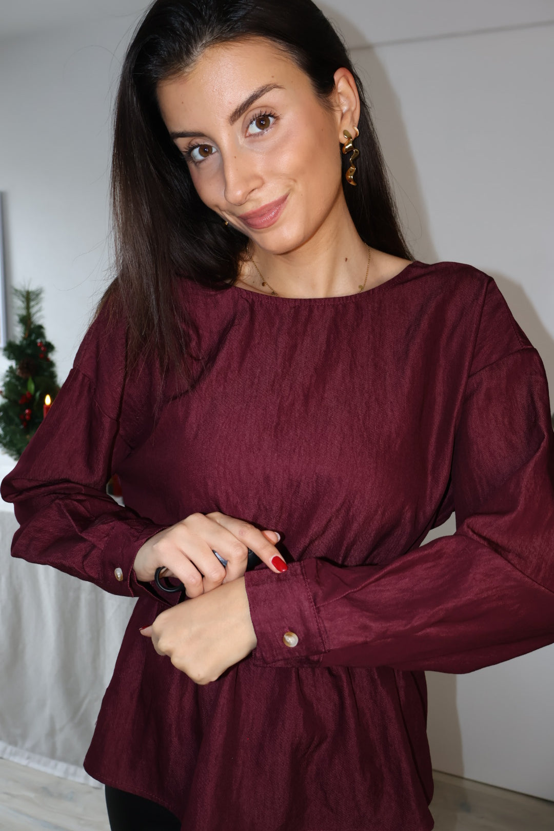 Sublimez votre silhouette avec cette jolie blouse bordeaux, féminine et chic.