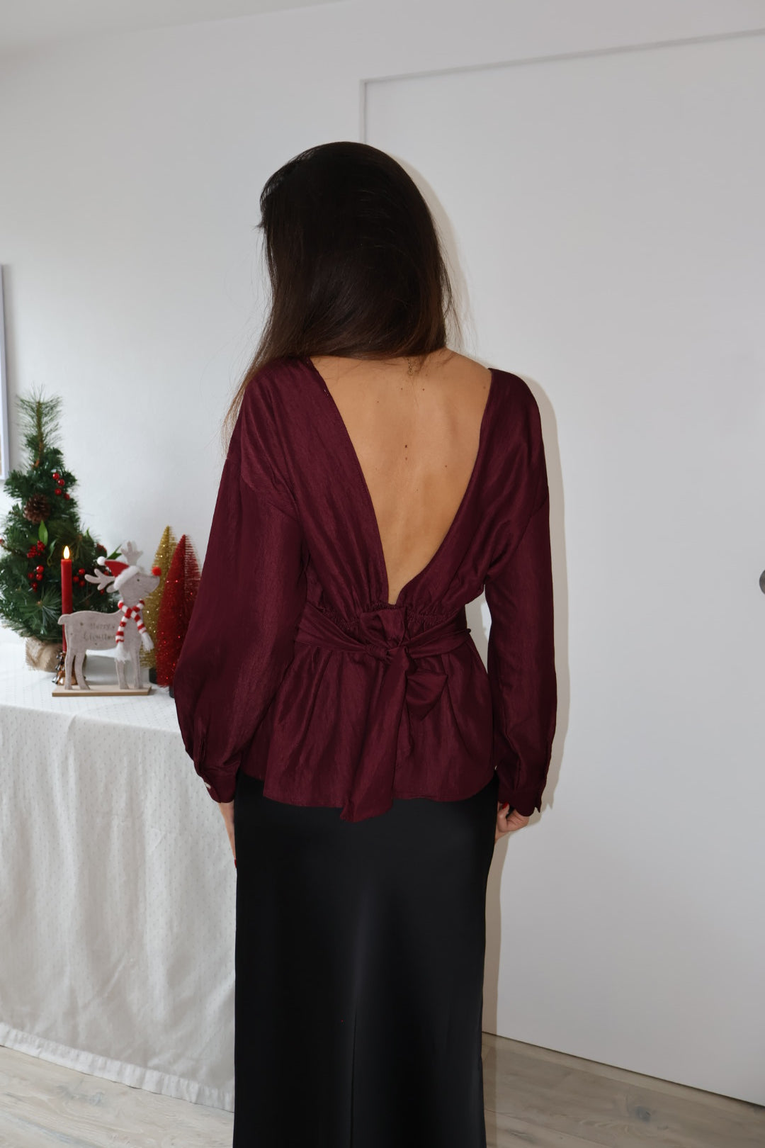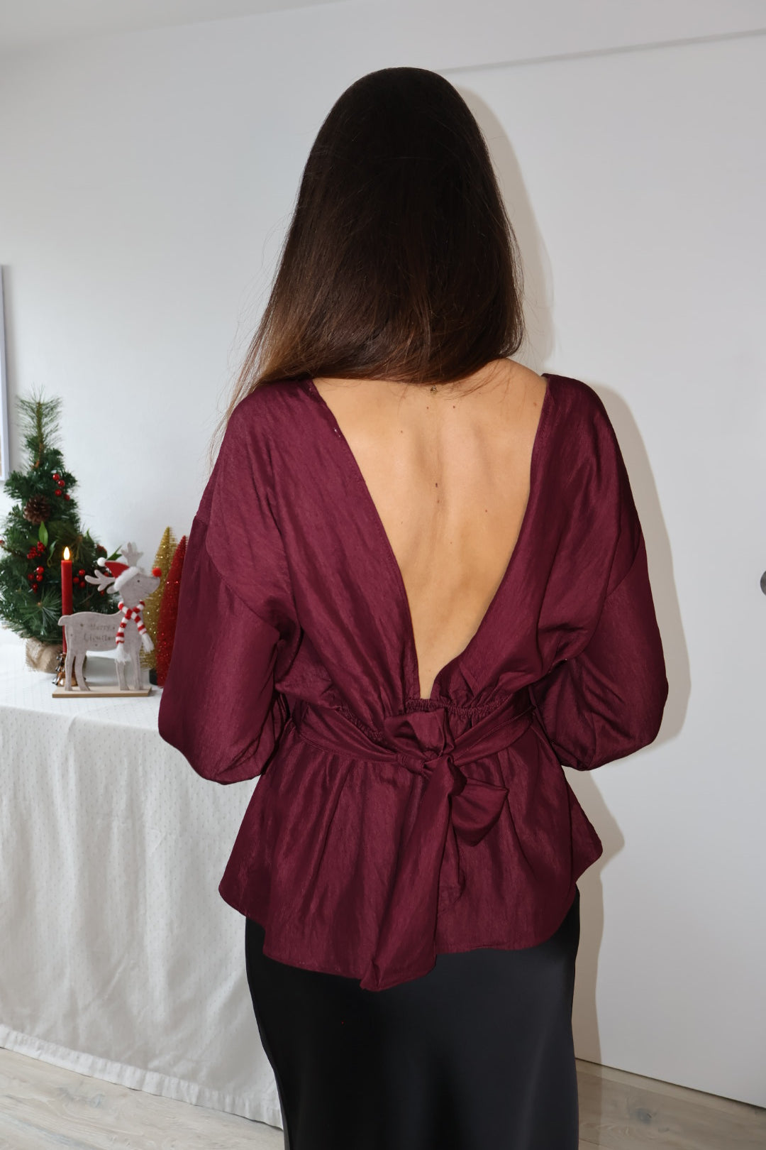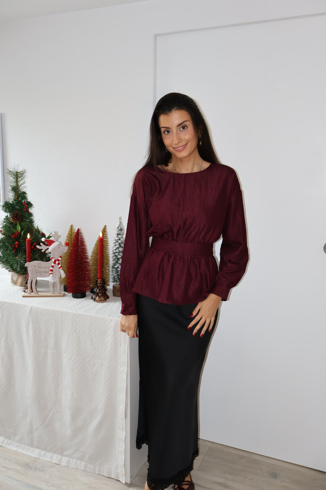 Sublimez votre silhouette avec cette jolie blouse bordeaux, féminine et chic.