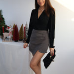 Optez pour une touche de glamour discret avec ce body noir au col en V, rehaussé de petites paillettes légères qui captent délicatement la lumière.