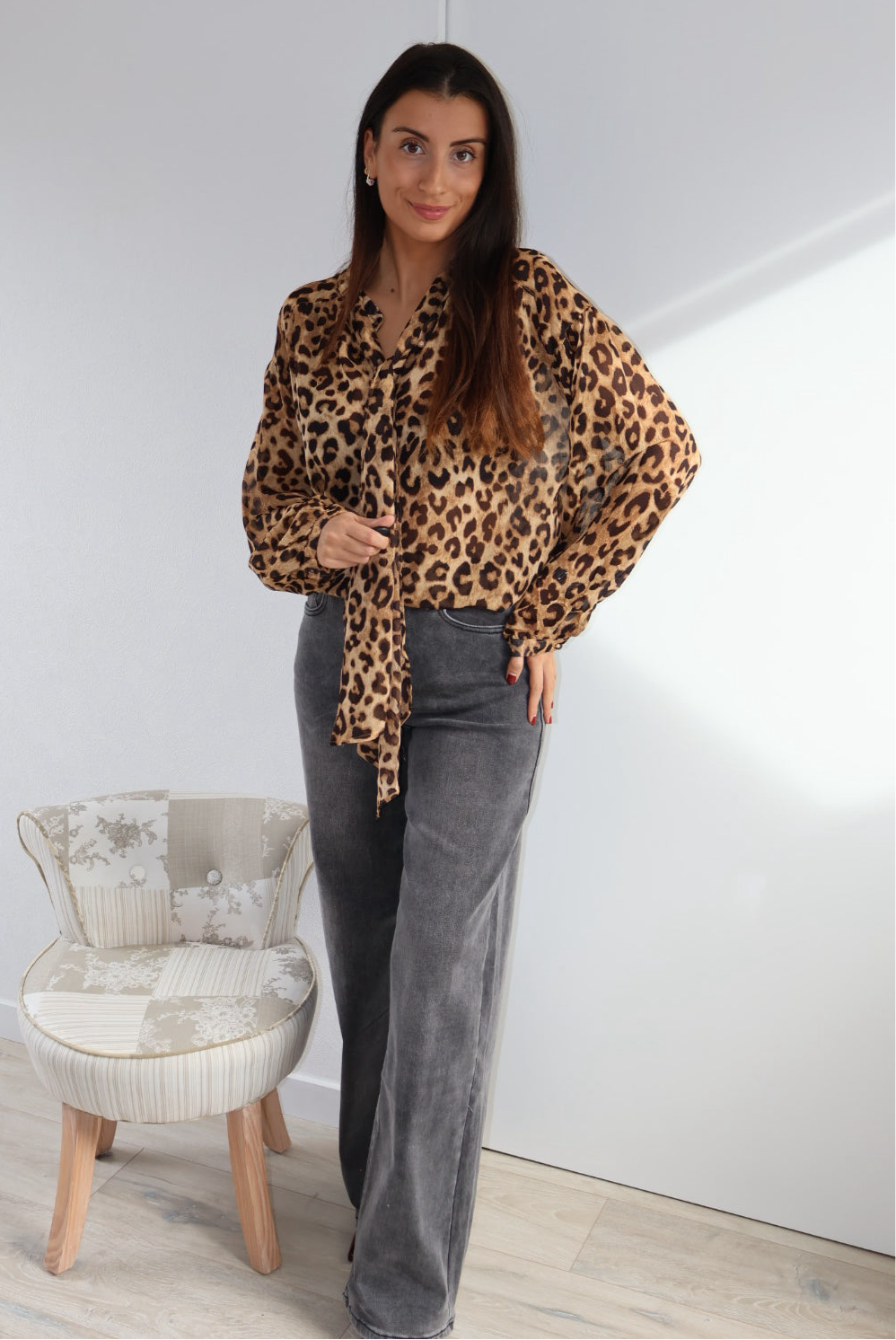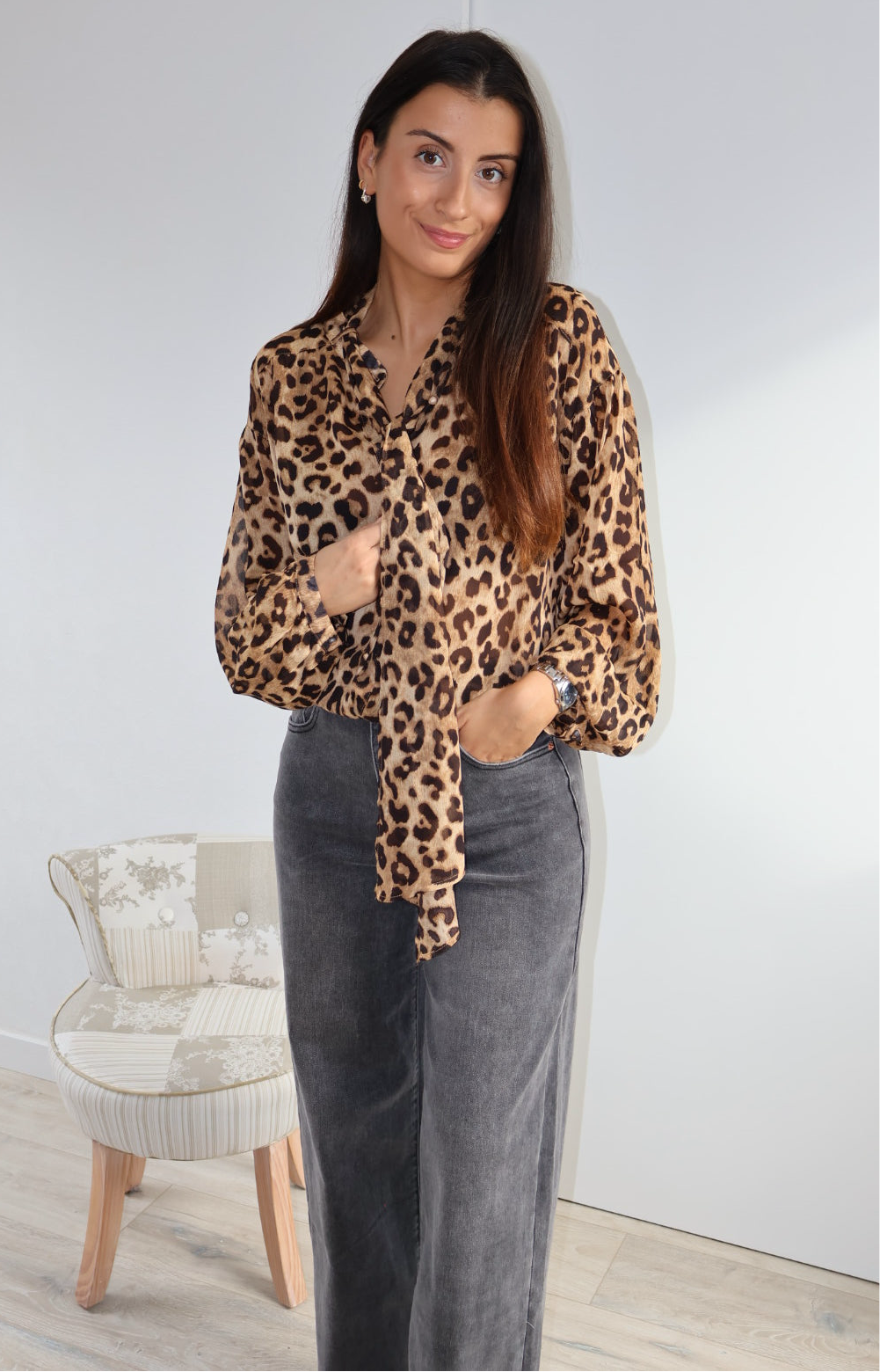 Sublimez votre allure avec notre chemisier léopard contenant de la soie, une pièce raffinée qui allie élégance intemporelle et touche audacieuse.