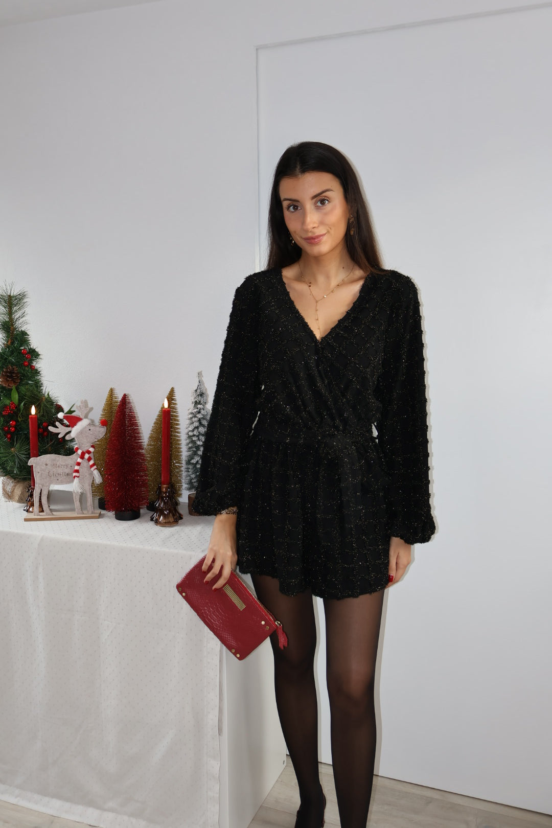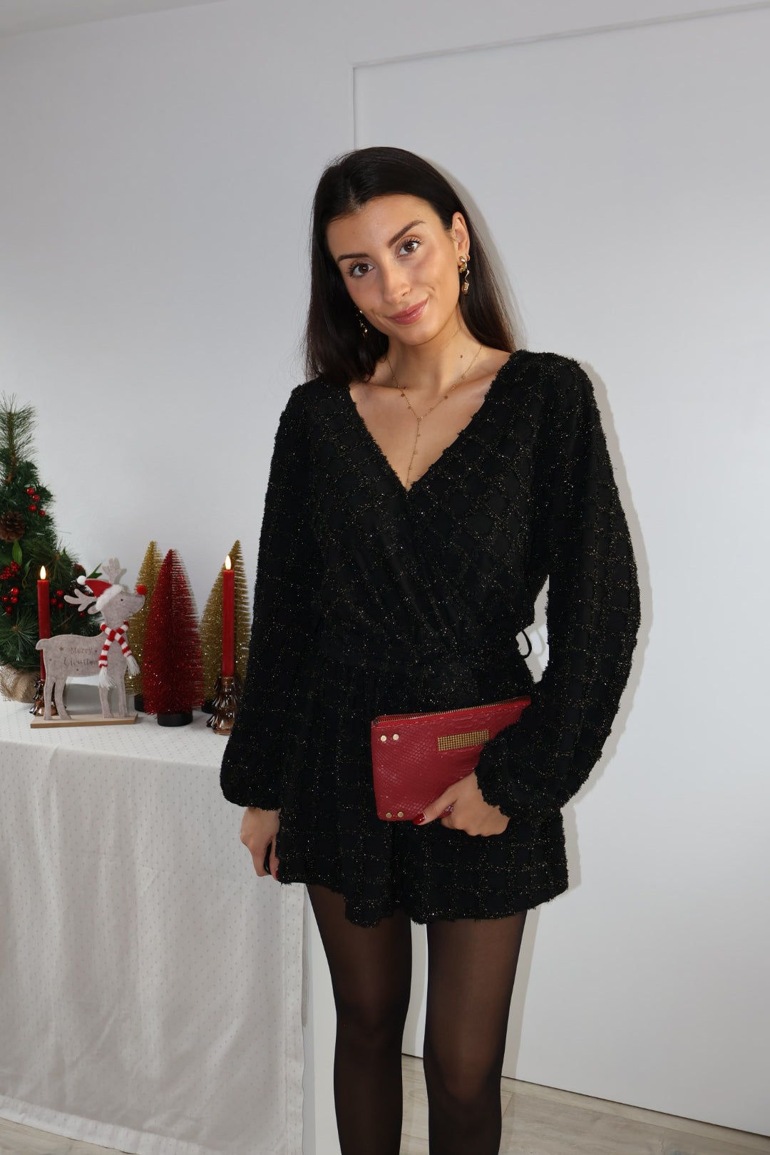 Sublimez vos tenues de fête avec ce combishort noir chic et élégant.