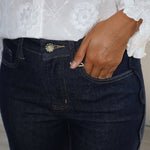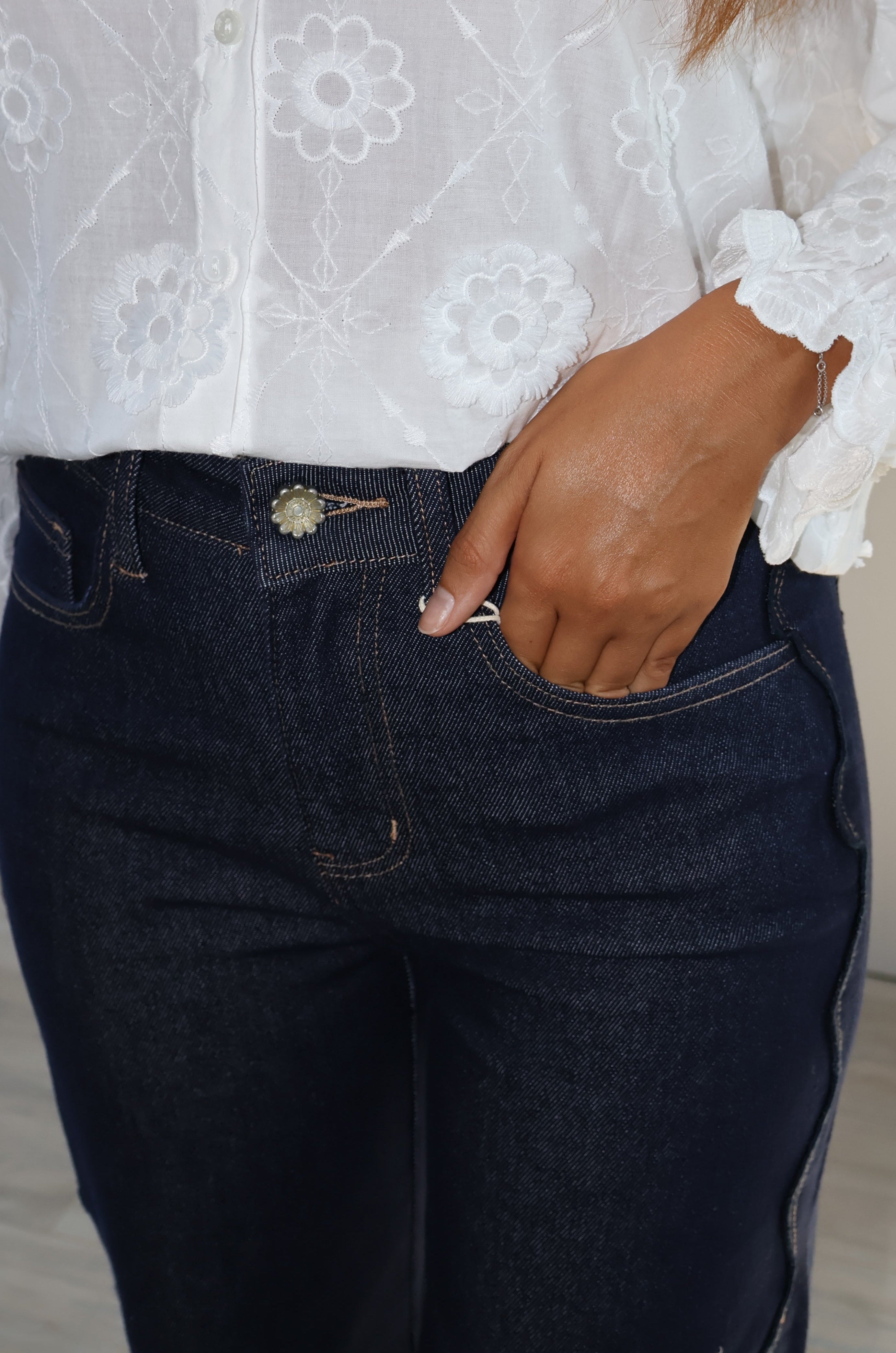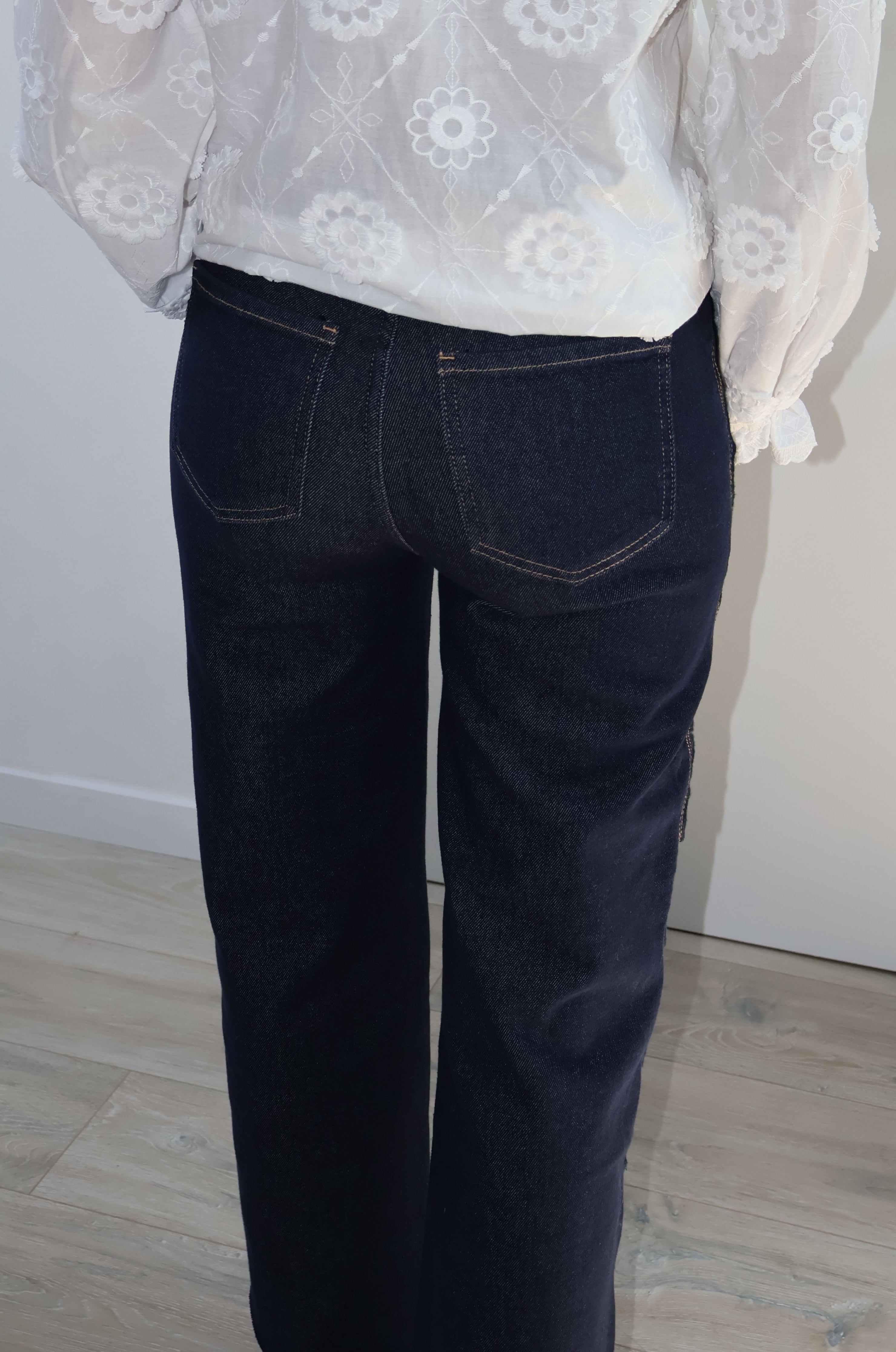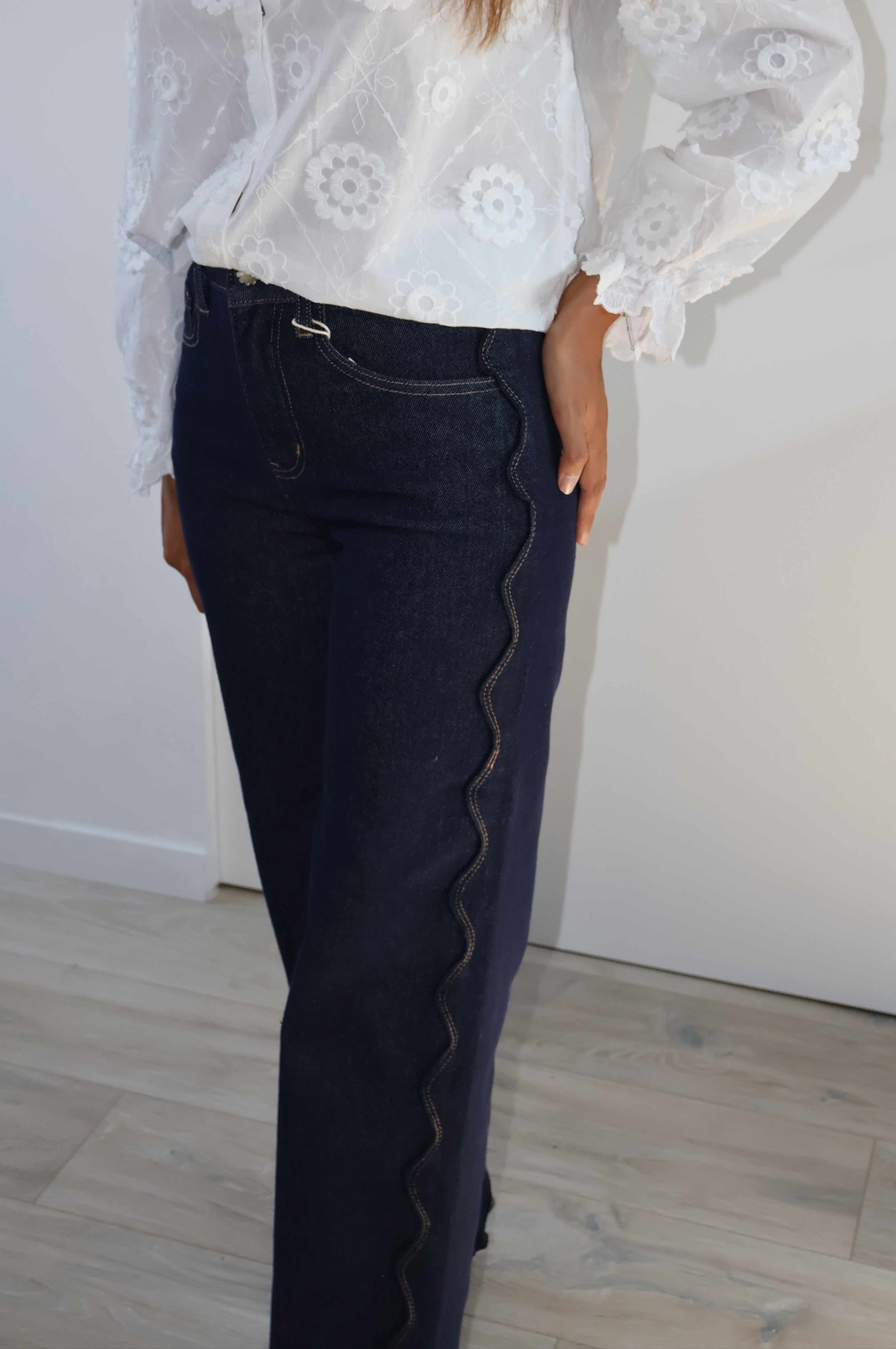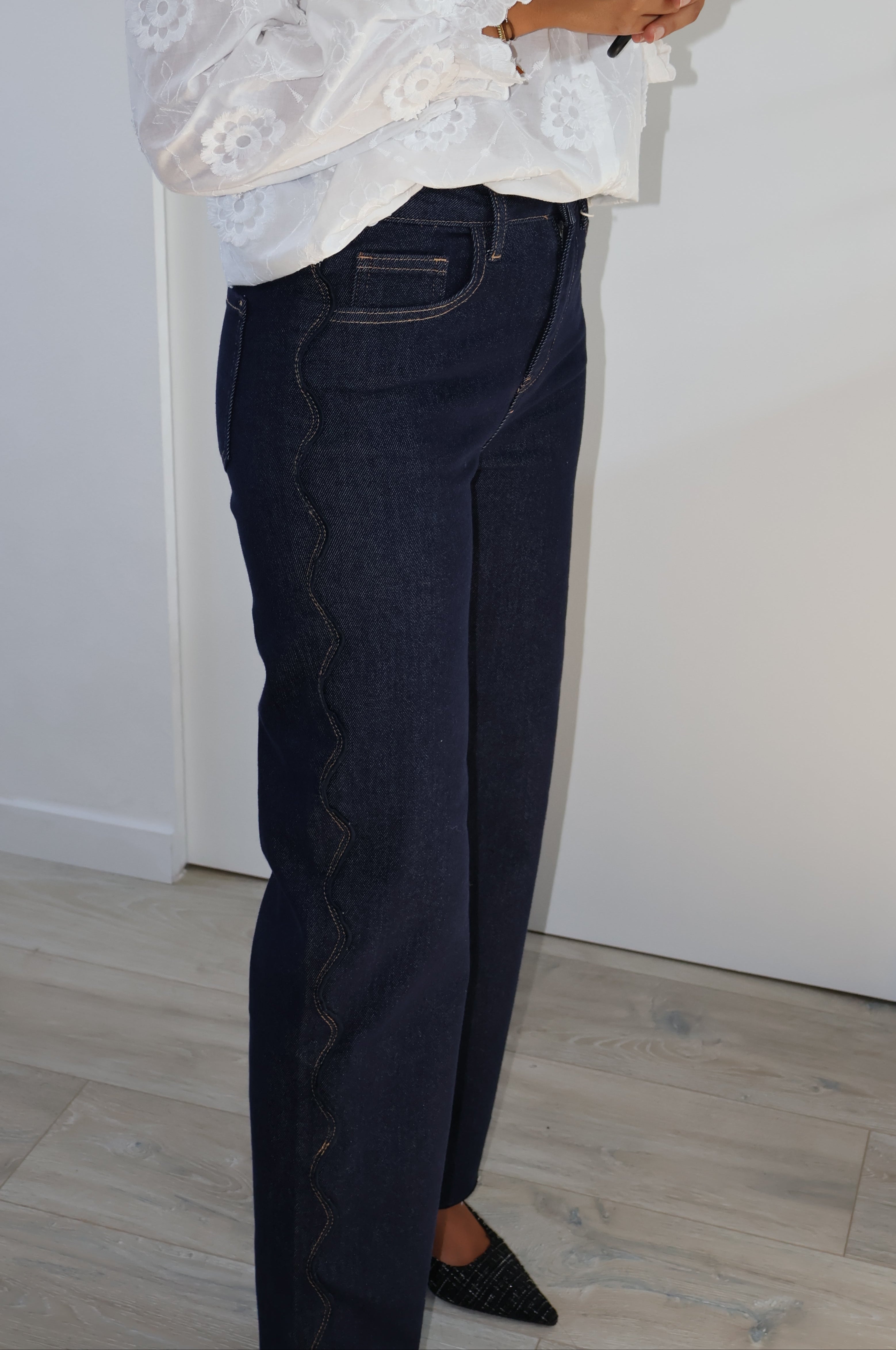 Jeans brut avec un joli détail sur le côté de la jambe.
