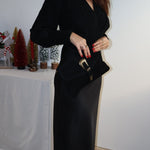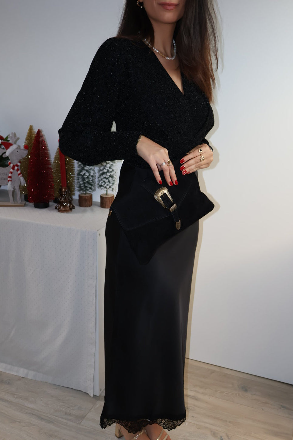 Optez pour une touche de féminité et d’élégance avec cette longue jupe noire à la matière douce et fluide, parfaite pour accompagner vos mouvements avec légèreté.