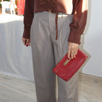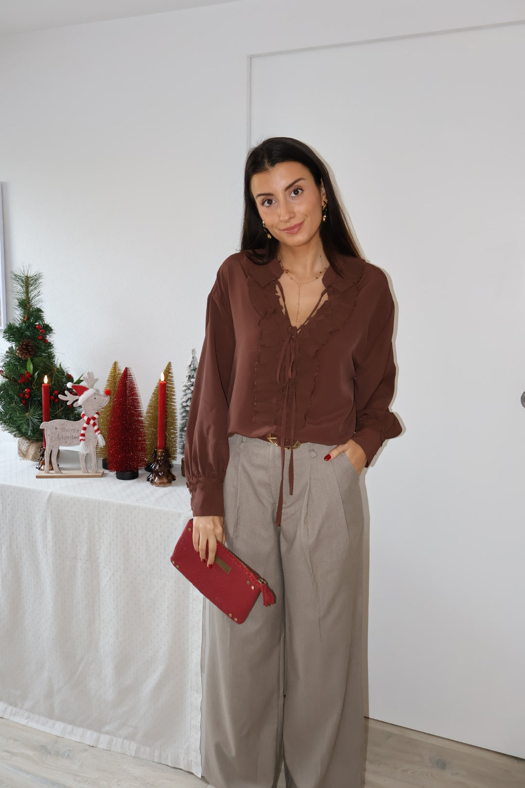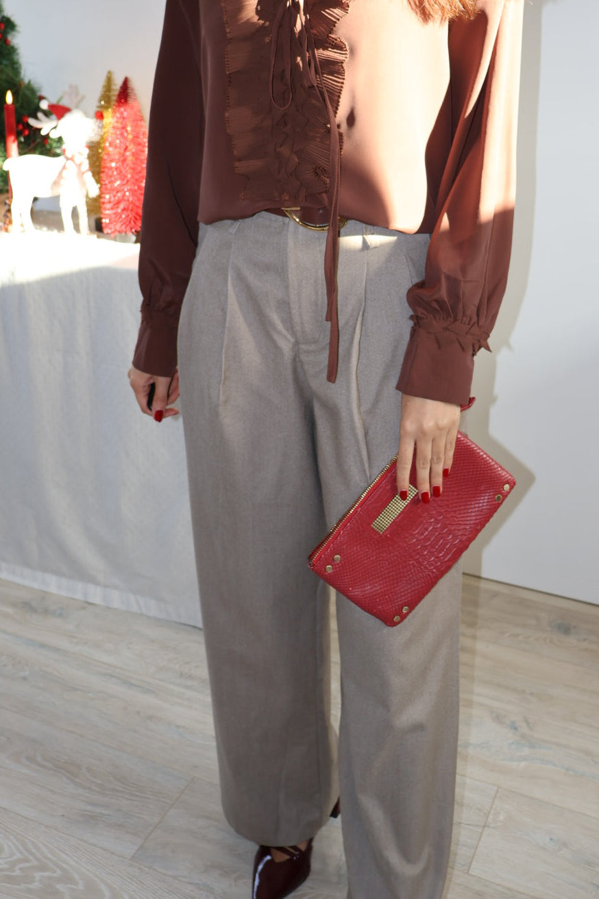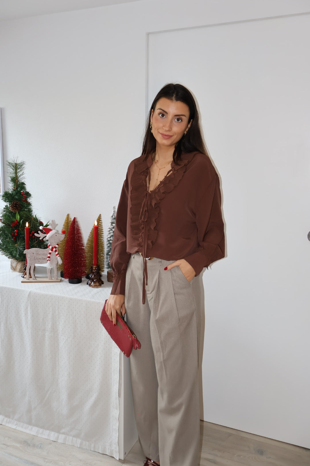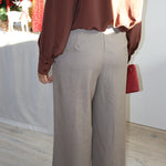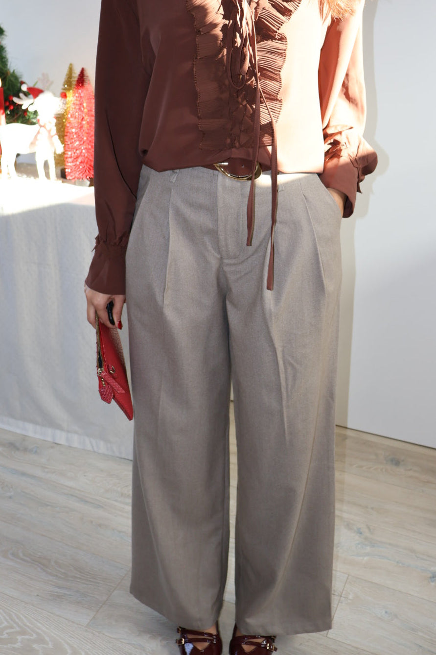 Découvrez ce joli pantalon effet tailleur de couleur taupe, une pièce élégante et facile à porter au quotidien.