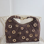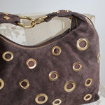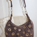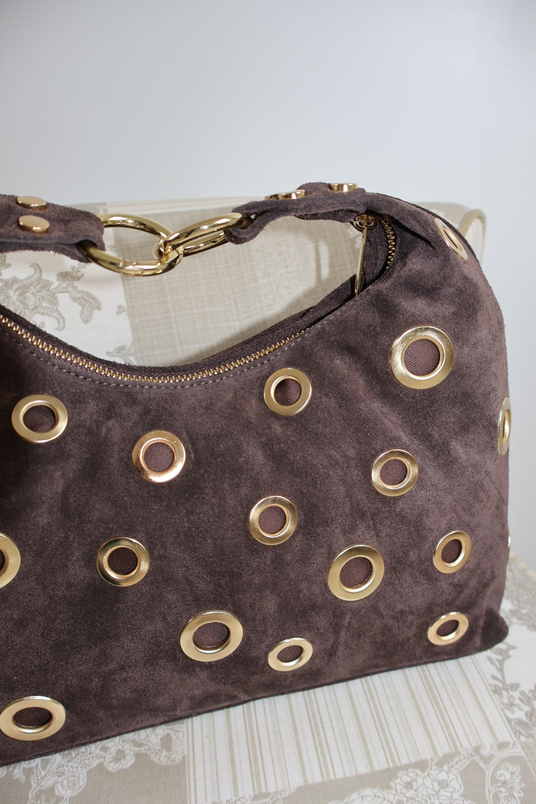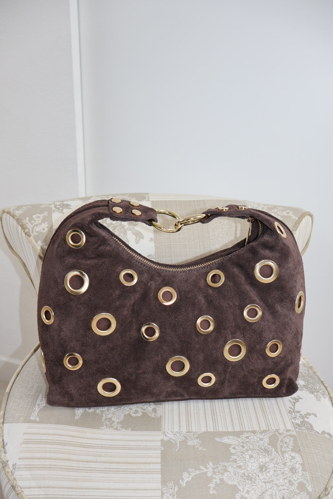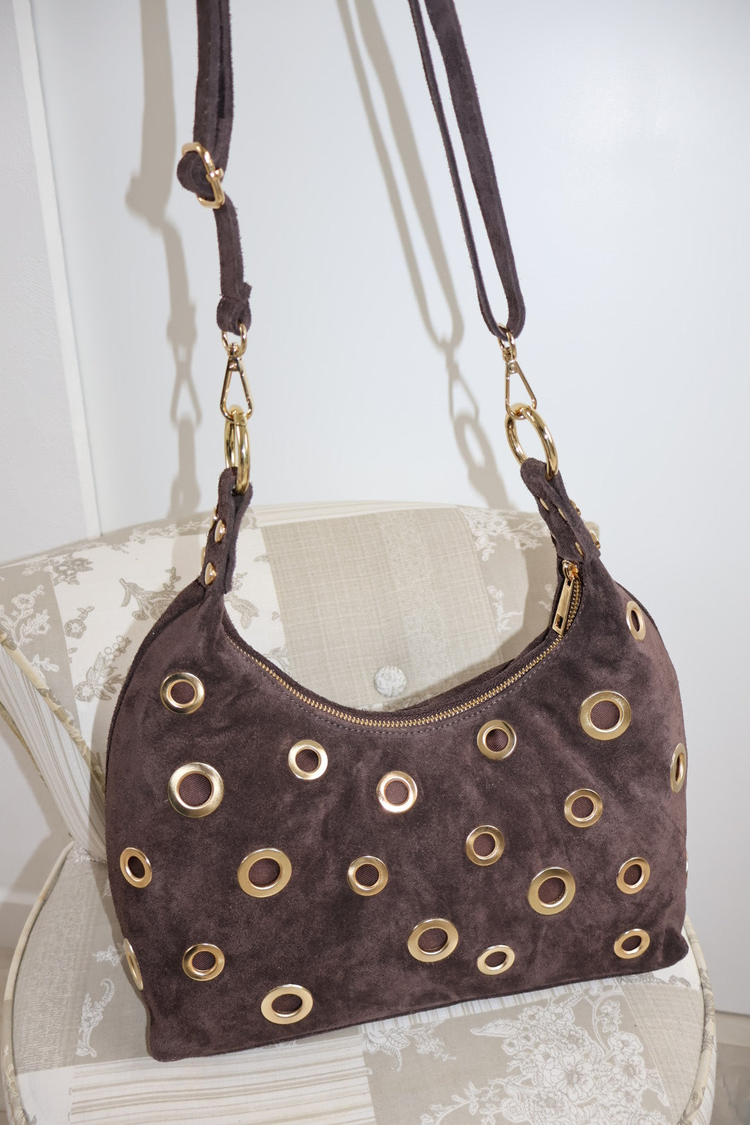 Sac marron foncé en daim.
